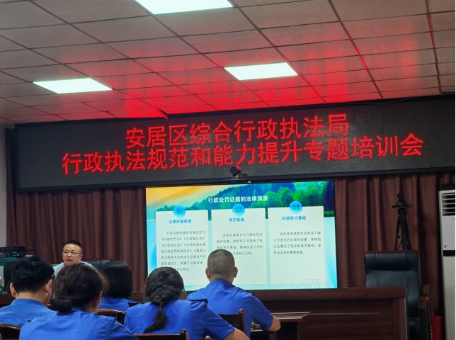 为深入推进规范涉企行政执法专项行动,切实提升执法人员行政执法能力和水平,2025年9月5日上午,区综合行政执法局组织开展了行政执法规范和能力提升专题培训。此次培训参与人员共计30人,包括政策法规股、执法大队办公室全体人员,各执法中队小队长及以上人员和所有从事执法案件办理的相关人员。