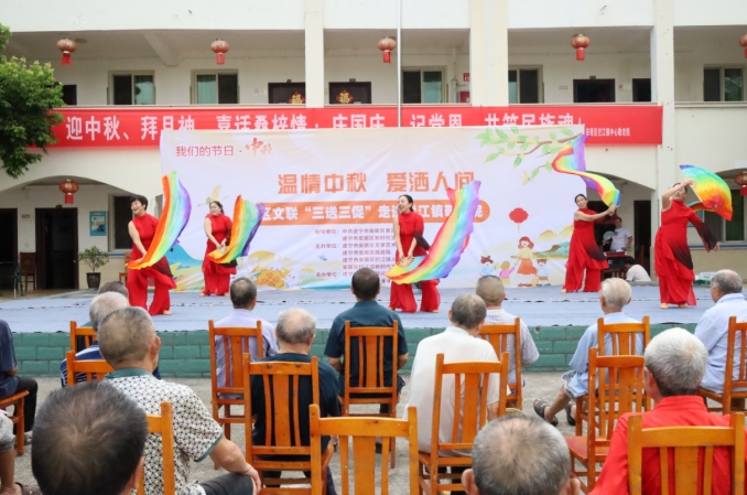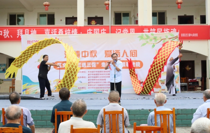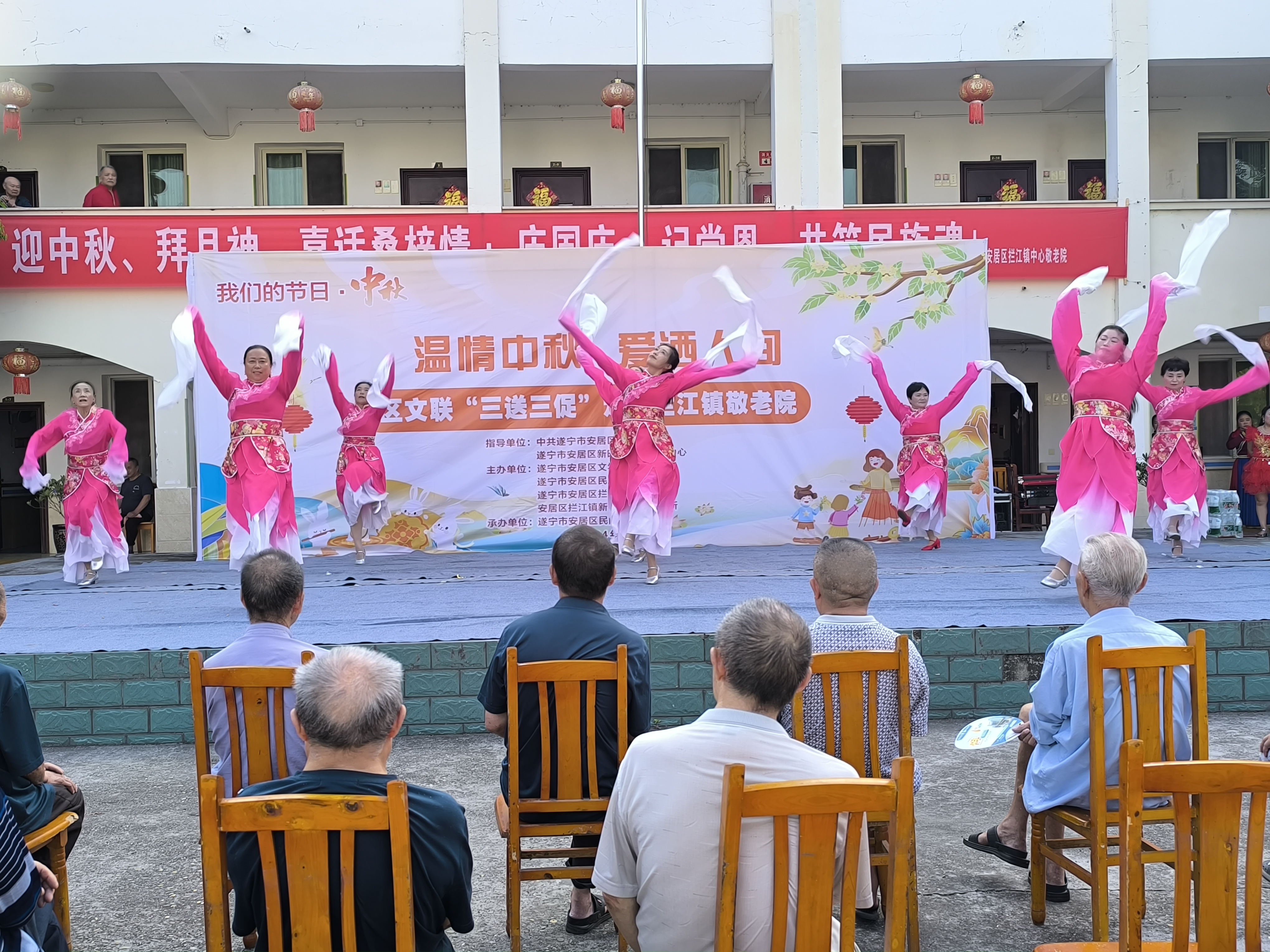 金秋送爽、丹桂飘香。为弘扬传统文化习俗,迎接中秋节到来,9月13日,由安居区文学艺术界联合会、安居区民政局、安居区拦江镇人民政府等单位主办,安居区民间文艺家协会承办的“温情中秋 爱洒人间”文艺汇演活动在拦江镇敬老院举行。