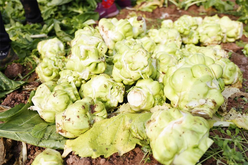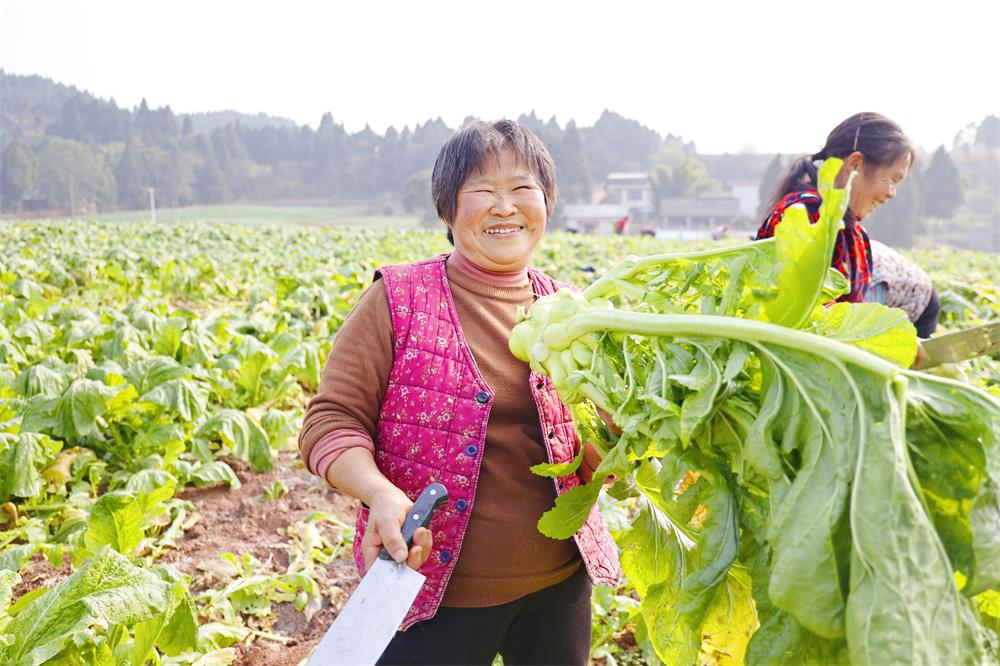 彭嬢嬢就是采摘榨菜的工人之一,她手捧着榨菜开心地说道:“咱们这工作的除了本村的人以外还有隔壁村的,一天60块钱,不仅能在家门口务工,还能兼顾自家的农作物。”