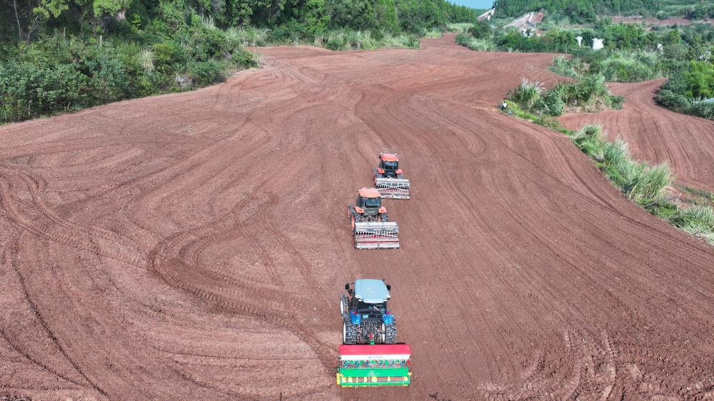 在宝泉沟村巧农农机专业合作社的小麦种植基地里,5台播种机正开足马力在田间来回穿梭,整地、施肥、播种……一气呵成,现场一派繁忙的秋播景象。合作社理事长彭巧告诉记者,十月初就已经拉开冬小麦播种序幕,按照往年的经验,今年冬小麦延续“一早一晚”播种,实现错峰农事服务,也能错峰烘干时间。