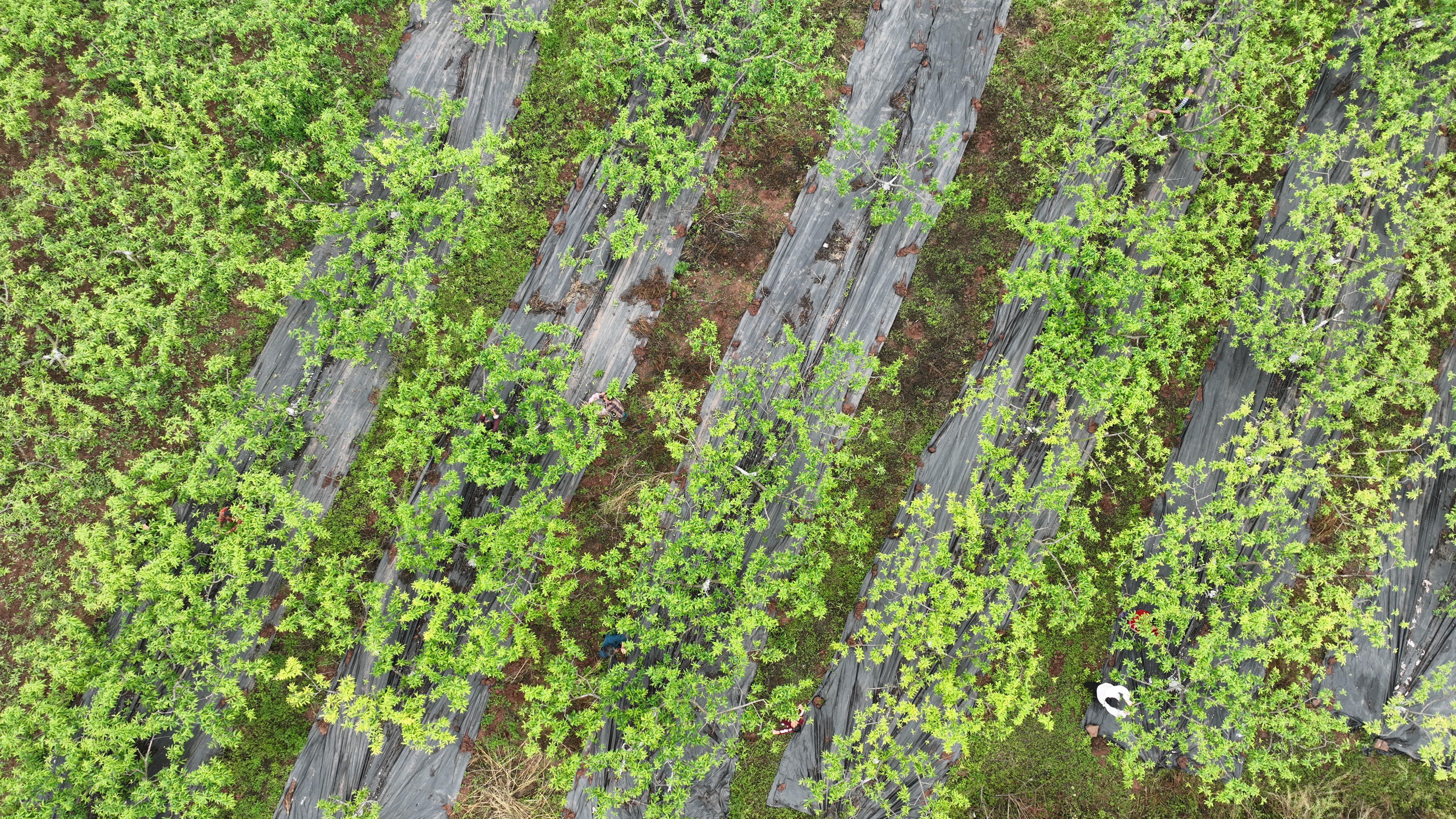 “因为胭脂脆桃5月份就会陆续成熟,现在进行修枝疏果能保证果子的品质和产量,再过十多天,我们就开始进行套袋,实现一棵成年果子80-100斤的产量。”潘健介绍。