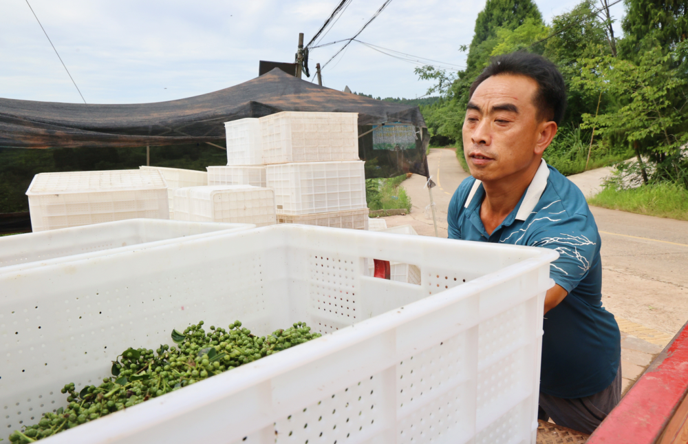 “目前藤椒进入采摘期,主要销往川渝地区藤椒榨油厂。”据基地负责人徐成华介绍,“根据市场行情今年的收购价格大概在7块钱一斤,预计亩产量在1000斤左右,亩产值能达到6000元至7000元。”