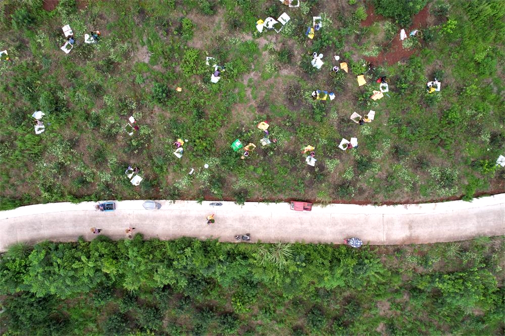 瞧,满山遍野的藤椒树上,挂满了粒粒饱满油亮的藤椒,果实压枝的成片椒林下,喜上眉梢的椒农们正忙着剪枝摘椒。发展藤椒,不仅让公司、合作社得到发展,更让村民得到实惠。