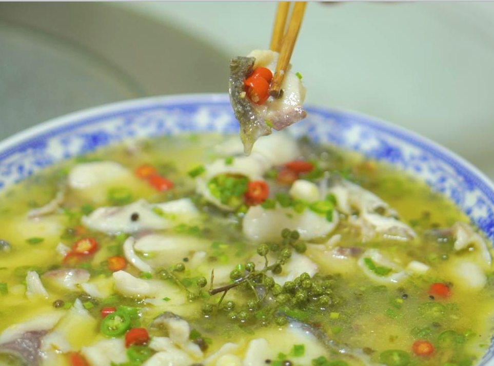 “打工像在别人剧本里跑龙套,回乡才是自己当导演。”他舀起一勺鱼汤,金黄的油花里浮着几粒青花椒——这是中兴镇山野的馈赠,也是他改良传统酸菜鱼的“密码”。十三岁离乡,三十岁归来,他用十年颠勺功夫熬出一锅“姚氏江湖”:酸要透、麻要亮、鲜要钻心。
