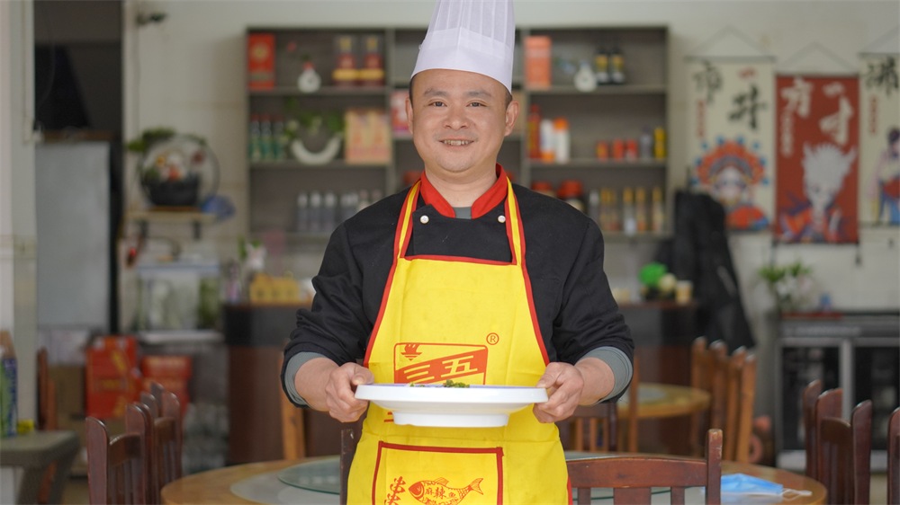 清晨,中兴场镇边的姚氏山庄,总以一声鱼尾拍水的清响开场。草鱼从河鲜池跃入竹篓,水珠溅湿姚旭的袖口——这场景让他想起儿时在堰塘边摸鱼的景象。二十年厨师生涯凝成刃上功夫,鱼片薄如蝉翼却不断不散,是对故乡河鲜最虔诚的告白。