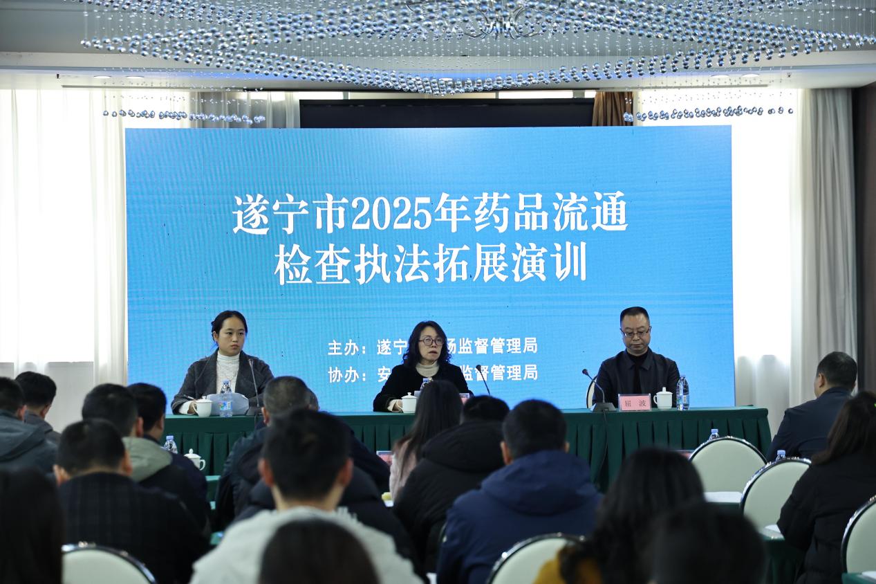 为全面提升基层药品监管队伍的专业能力和执法水平,11月27日至28日,遂宁市2025年药品流通检查执法拓展演训在安居举行。本次演训为期两天,特邀相关专家进行现场授课,围绕药品经营与使用环节的监管执法要点展开系统讲解。市市场监督管理局副局长李玲出席活动。