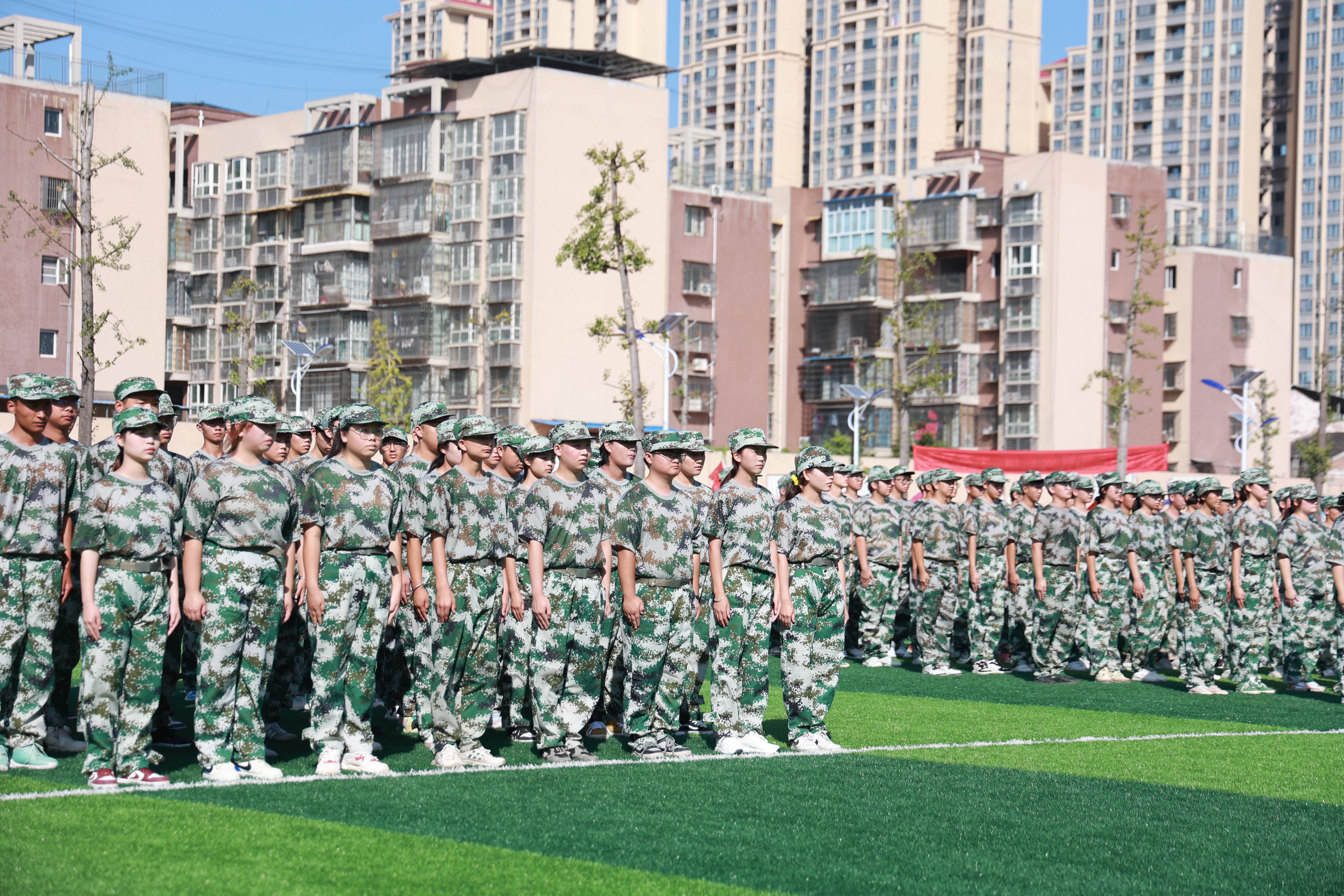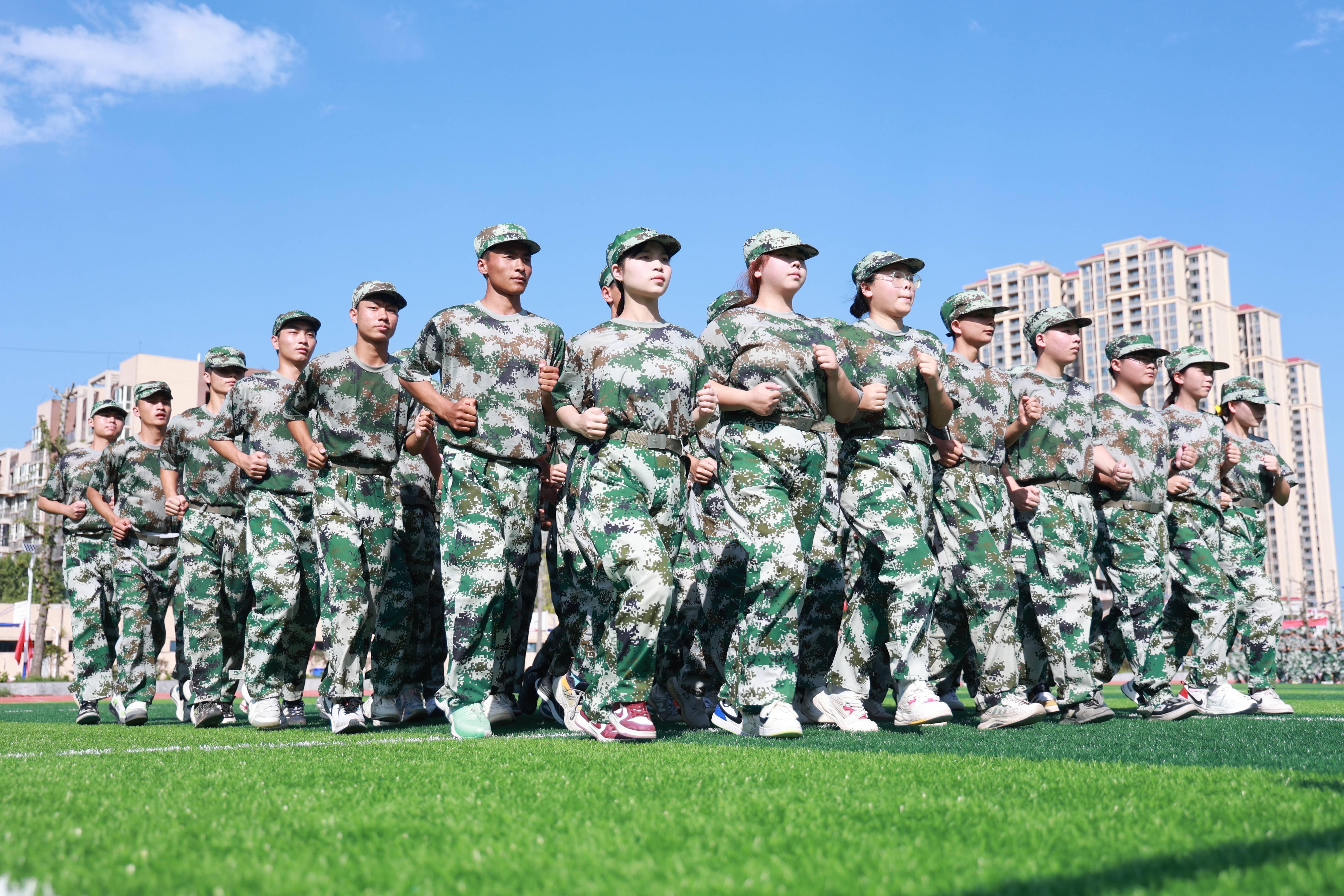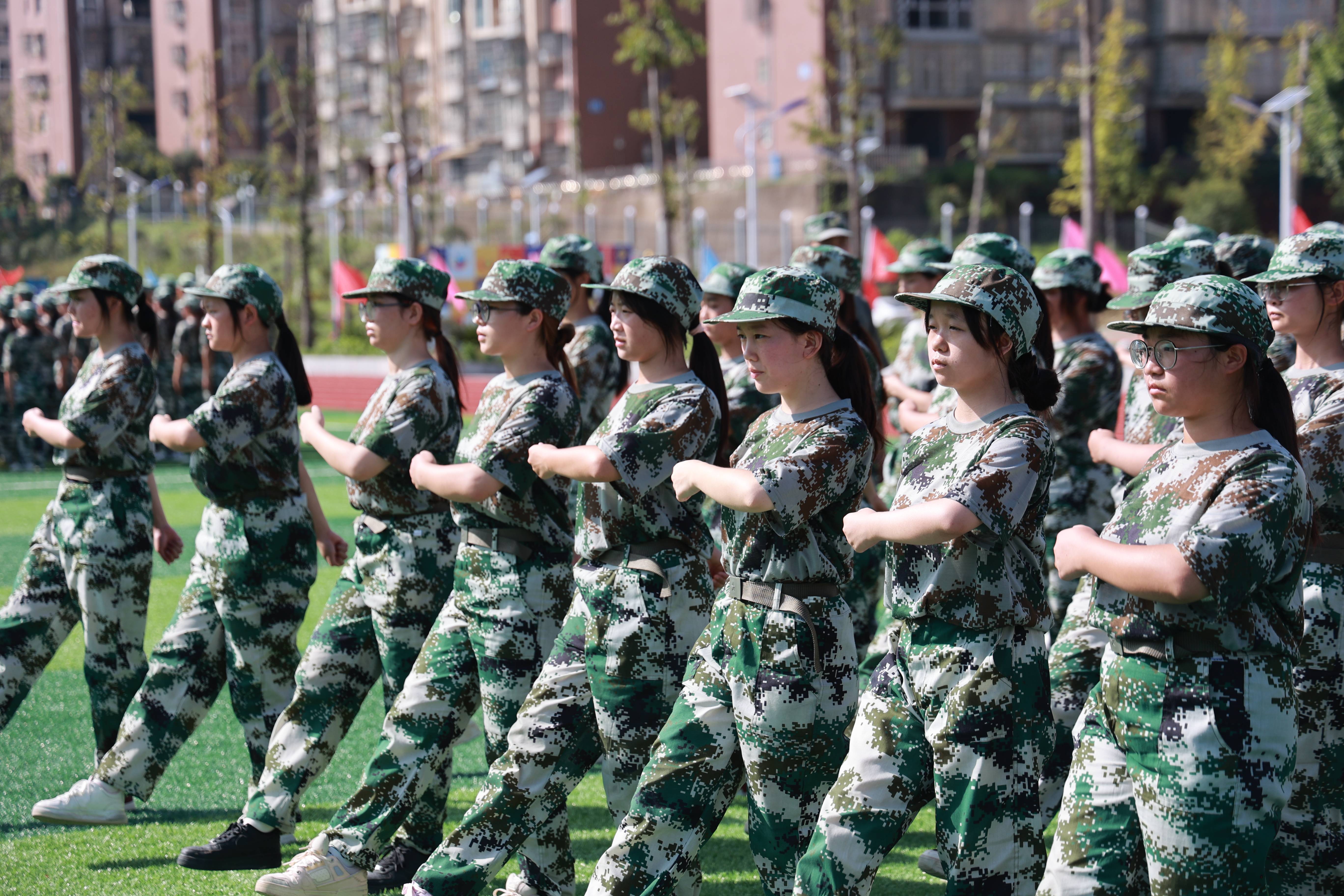 “立正”“向右看齐”“向前看”……嘹亮的口令声在校园操场上此起彼伏。9月13日,遂宁工程职业学院新生军训工作正有序进行,耀眼的迷彩、整齐的步伐、嘹亮的口号、雄伟的军姿已成校园一道亮丽的风景。