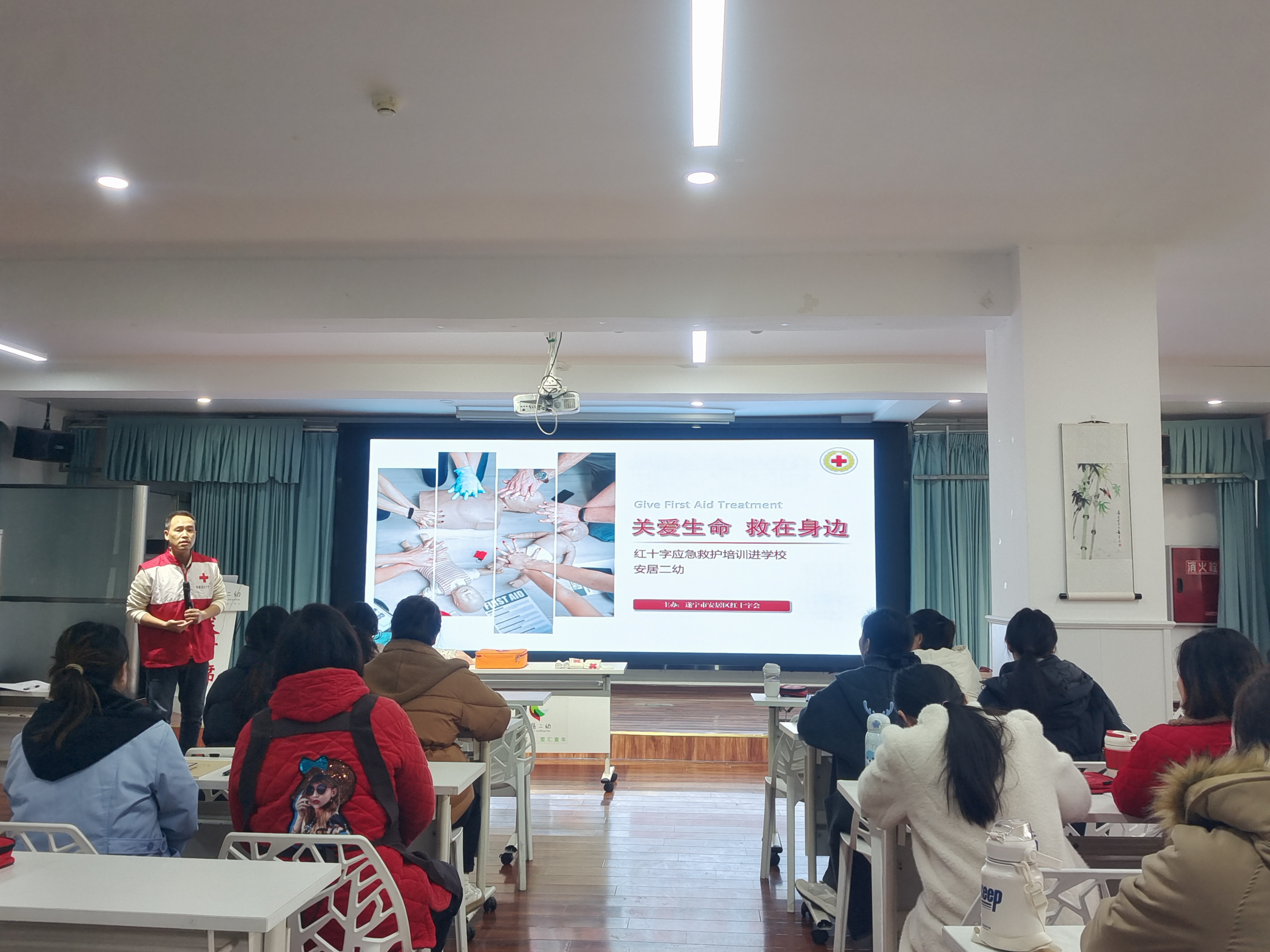 为全面普及和强化应急救护知识和技能,增强校园教职工的安全防范意识和应对突发事件的处置能力。11月26日,区红十字会走进安居区第二幼儿园开展教职工应急救护技能培训。