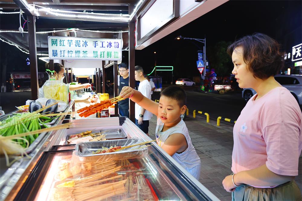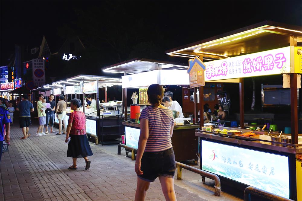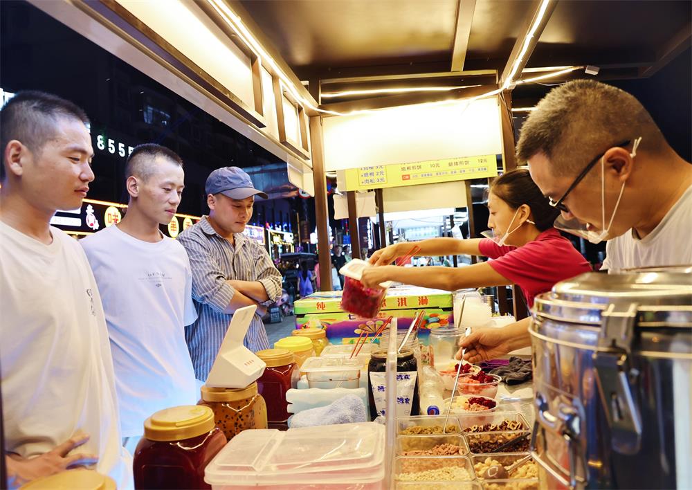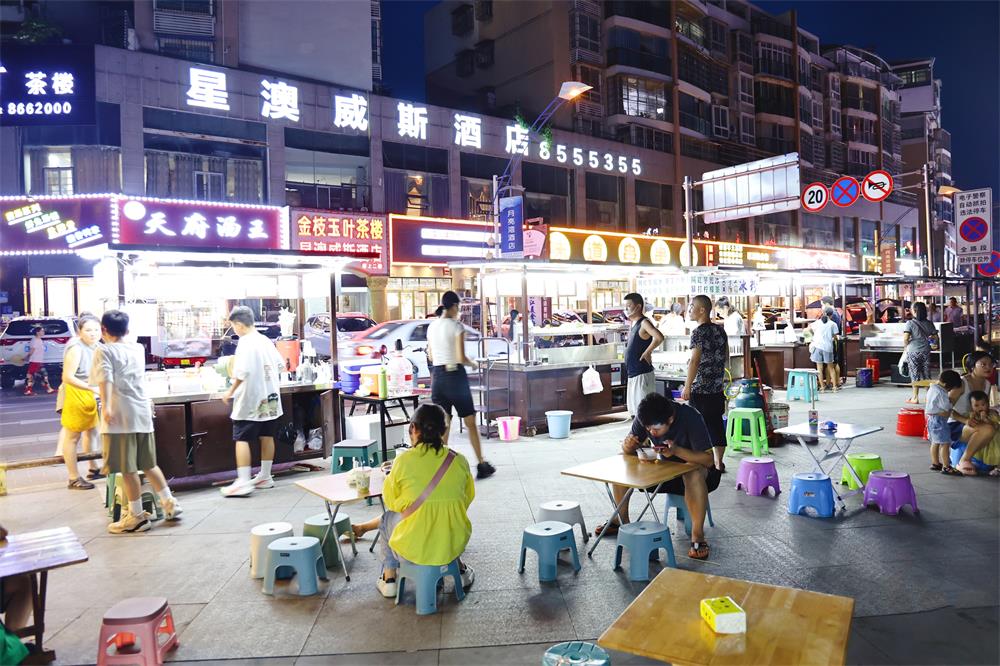 烤生蚝、臭豆腐、麻辣烫、炸串。冰粉……各类特色小吃的诱人香气汇聚在空气中,让人垂涎欲滴、流连忘返。人们卸下一天的疲惫,这尝尝,那品品,享受着美食带来的满足感和轻松愉悦。