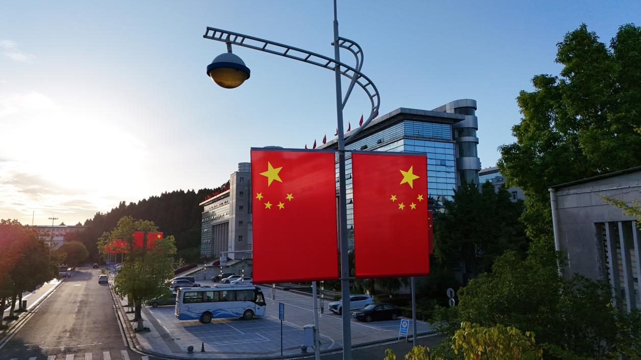 悄然挂起了一面面鲜艳的五星红旗