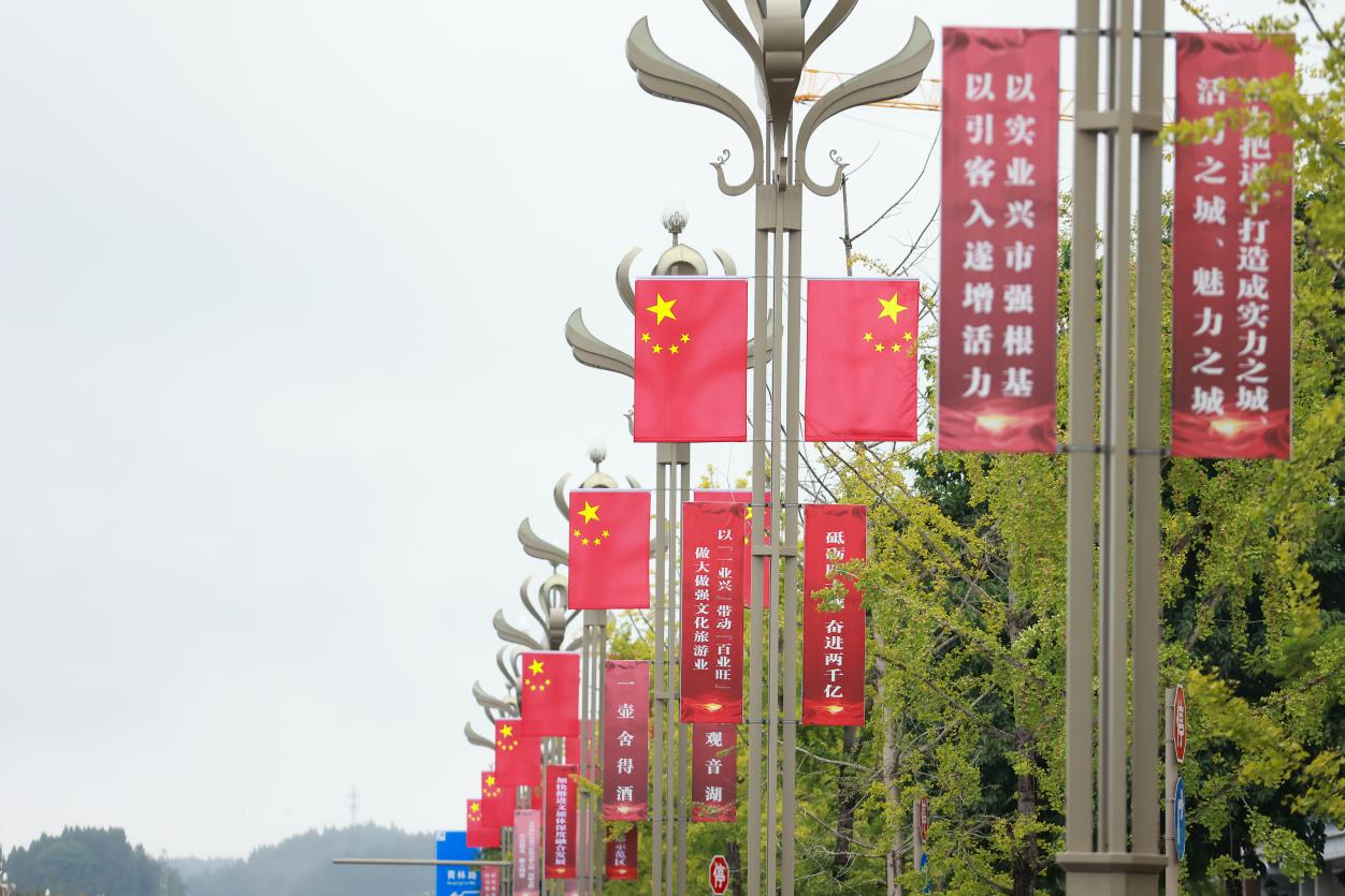 安居城区多条主干道路灯杆上