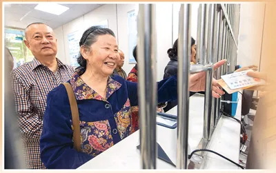 △遂宁市60周岁以上老年人免费乘坐公交政策实施后,市民排队办卡。魏琴/摄