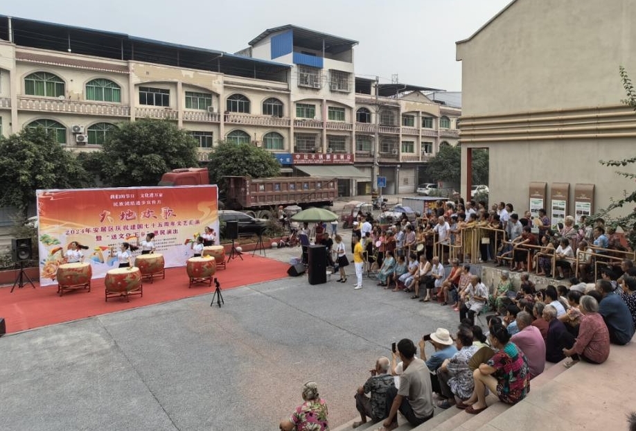 为隆重庆祝中华人民共和国成立七十五周年,丰富人民群众的精神文化生活,同时将高质量的文化体验带给广大农村地区的群众,促进文化资源的均衡分布,增强国民的文化自信与凝聚力,不断提升镇公共文化服务水平,推进镇文化事业繁荣发展,磨溪镇于2024年9月26日开展迎国庆演出活动。