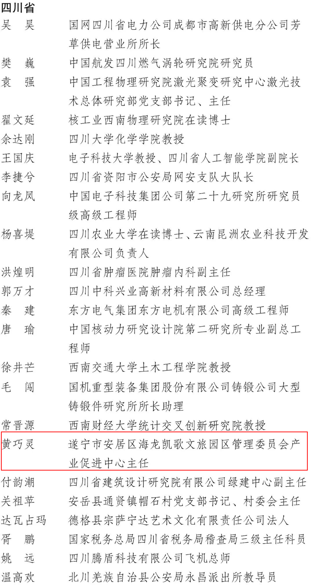 其中,安居区海龙凯歌文旅园区管理委员会产业促进中心主任黄巧灵榜上有名。