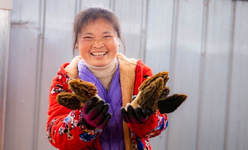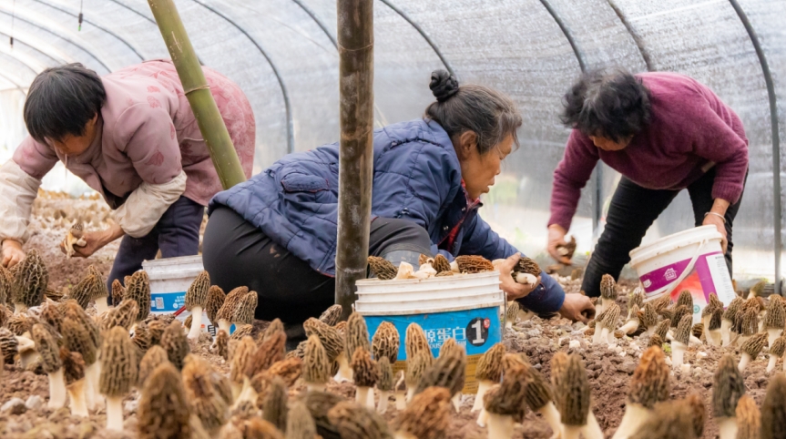 “摘的时候要小心一点,轻拿轻放……”在分水镇油草沟村的羊肚菌大棚里,工人们正小心翼翼地穿梭在垄中,麻利地采收羊肚菌。