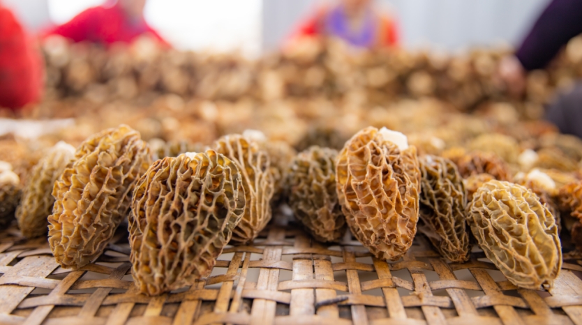 眼下正是羊肚菌采收的旺季,每天在基地工作的村民有20余名,他们有的在地里采摘,有的对羊肚菌进行分割、烘干,一切井然有序。
