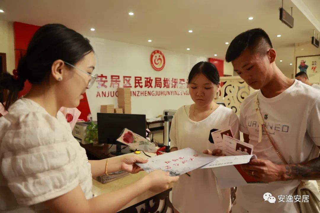 8月22日,是我国传统佳节七夕节,在这个最具浪漫色彩的日子里,安居区民政局婚姻登记处热闹非凡,早上6点便开始陆陆续续有新人前来办理结婚登记。