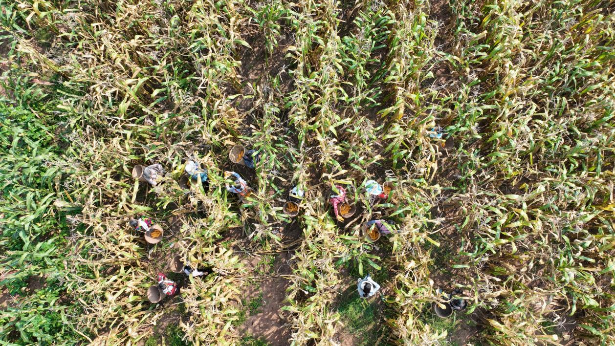 这几天,白马镇刺桐垭村村集体流转经营的900余亩玉米陆续成熟,田间地头,齐人高的玉米秆子结满沉甸甸的果实,村民们身背背篓,不时穿梭于玉米林海,娴熟地将一个个玉米掰下,丰收的欢声笑语传遍整个村庄。