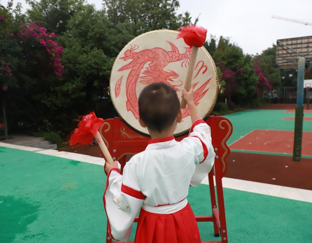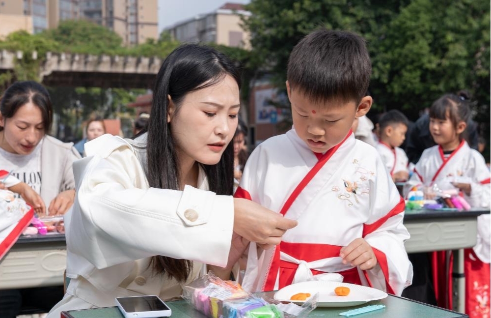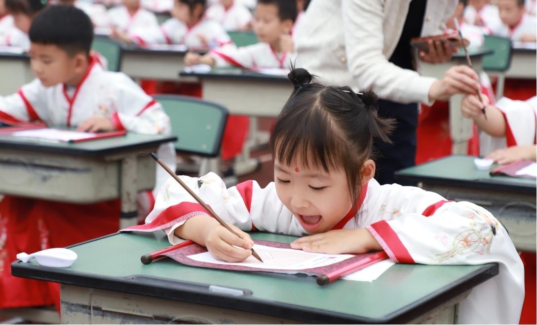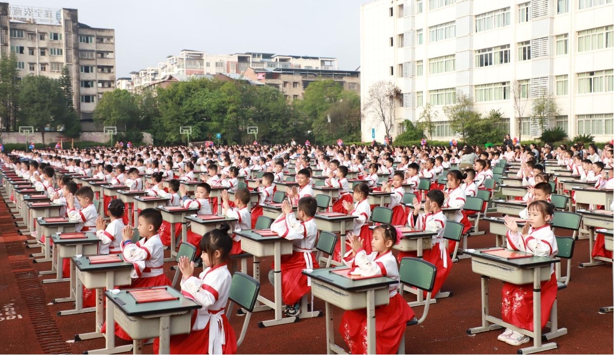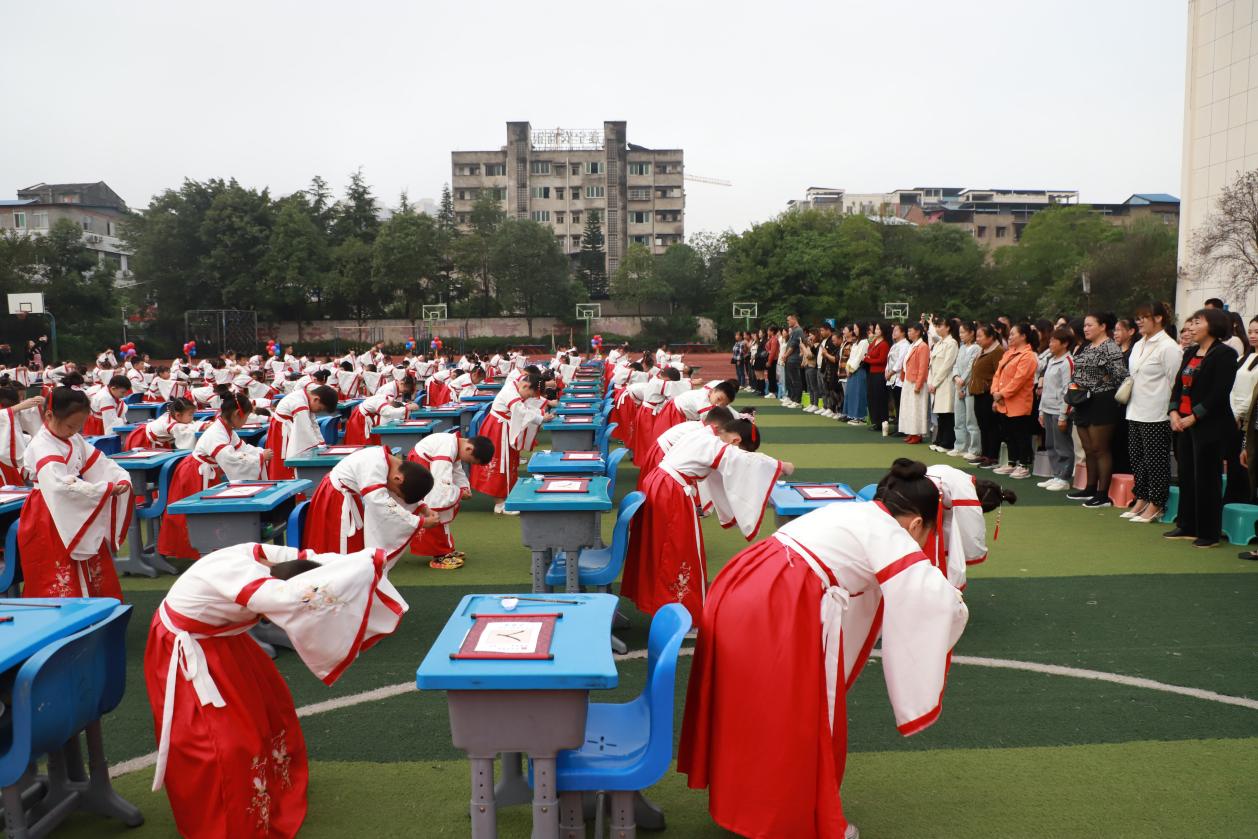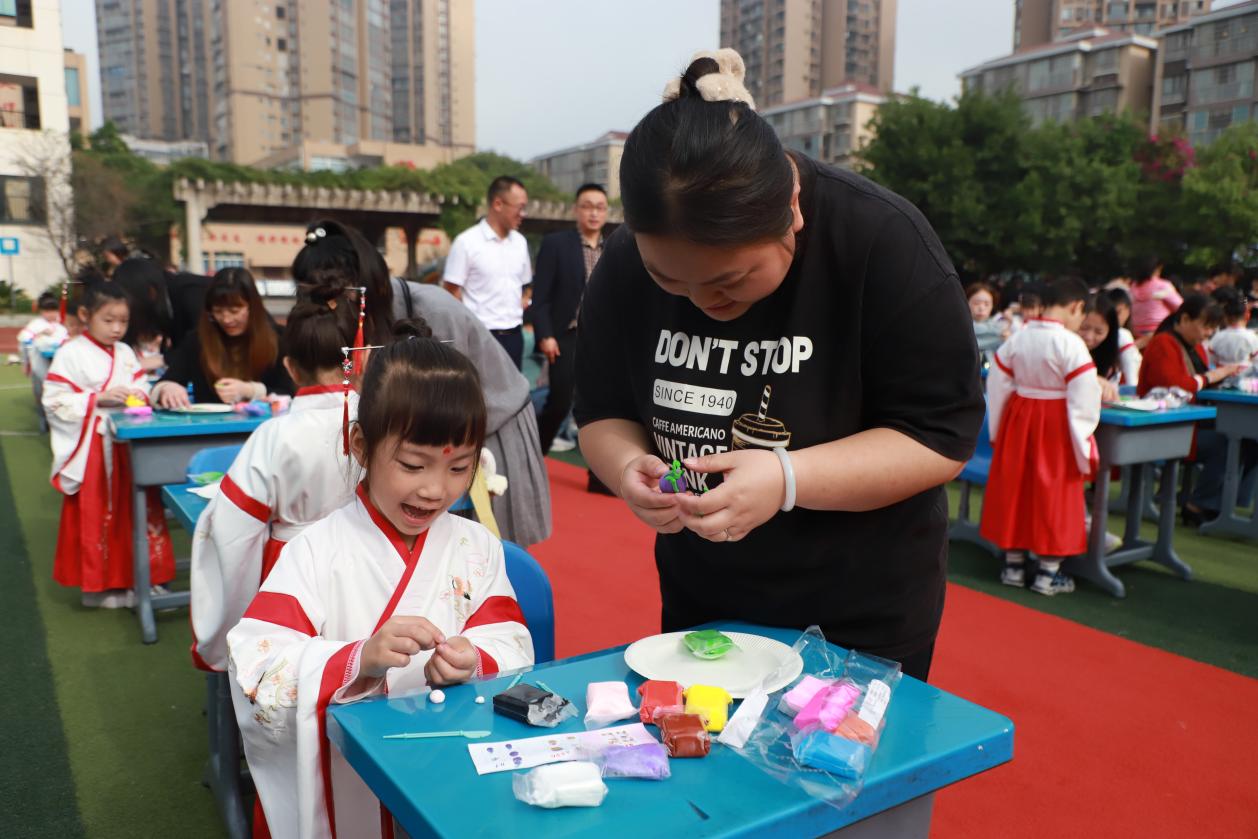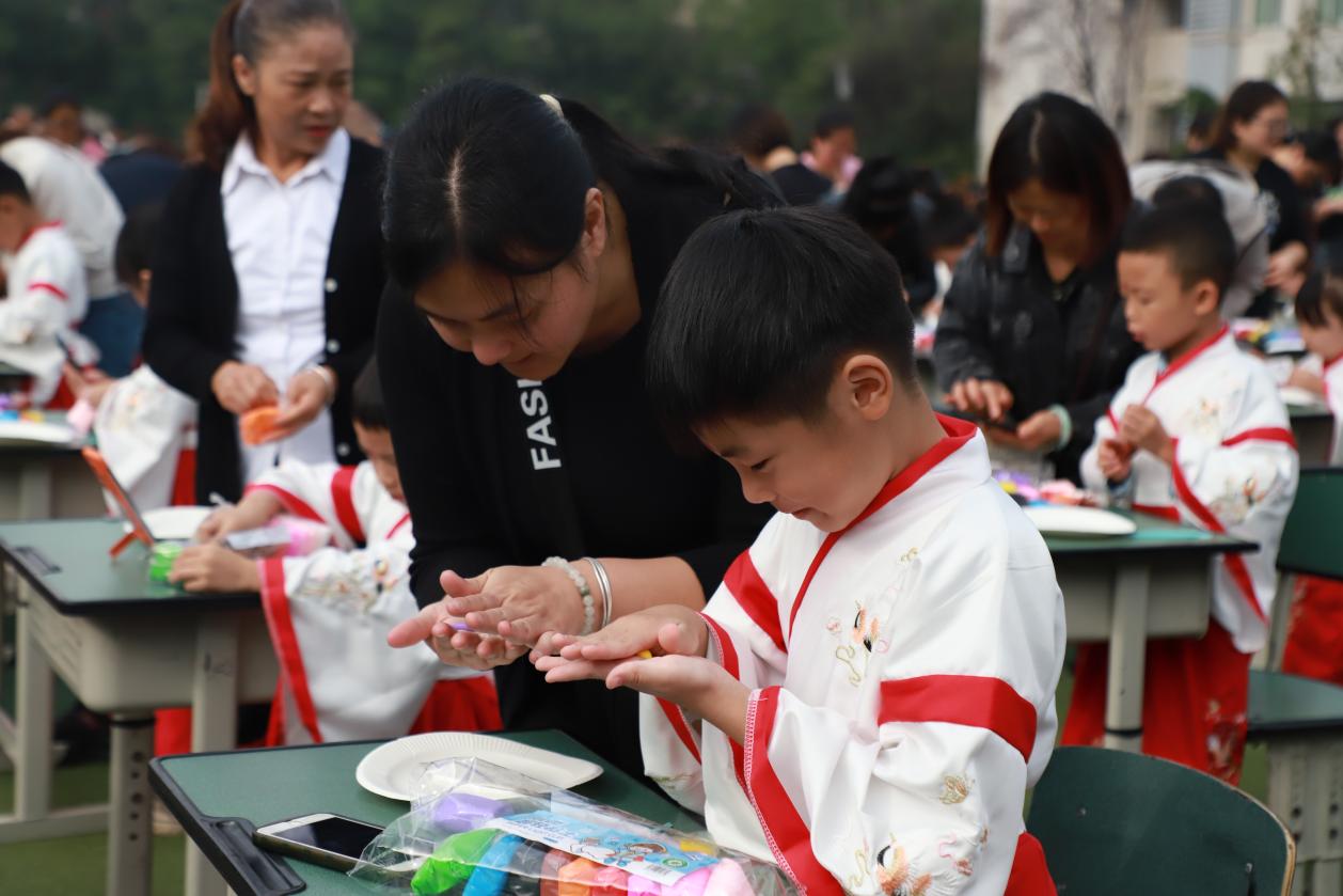 活动当天,学生与家长共同参与启蒙启智仪式、常规展示和亲子活动。学生们身着汉服,通过正衣冠、诵弟子规、朱砂启智、击鼓鸣志、破笔开蒙、敬师亲等环节,感受传统文化的魅力。