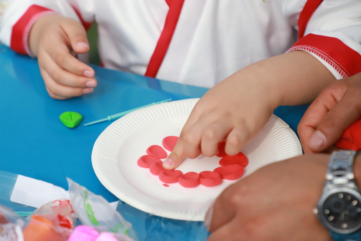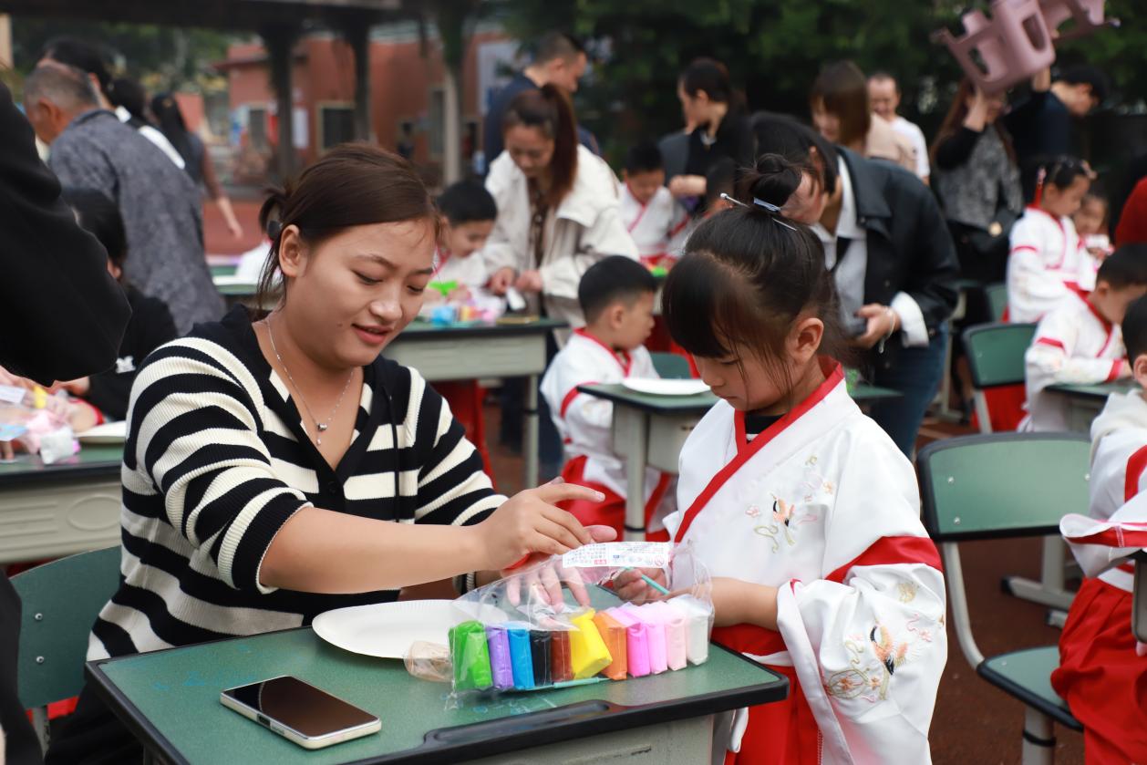 亲子活动中,家长与孩子共同创作泥塑作品,现场气氛温馨融洽。