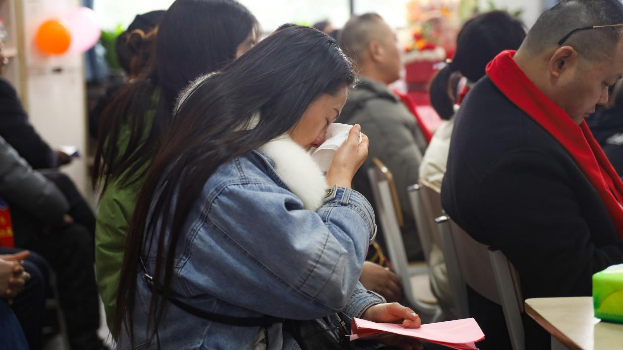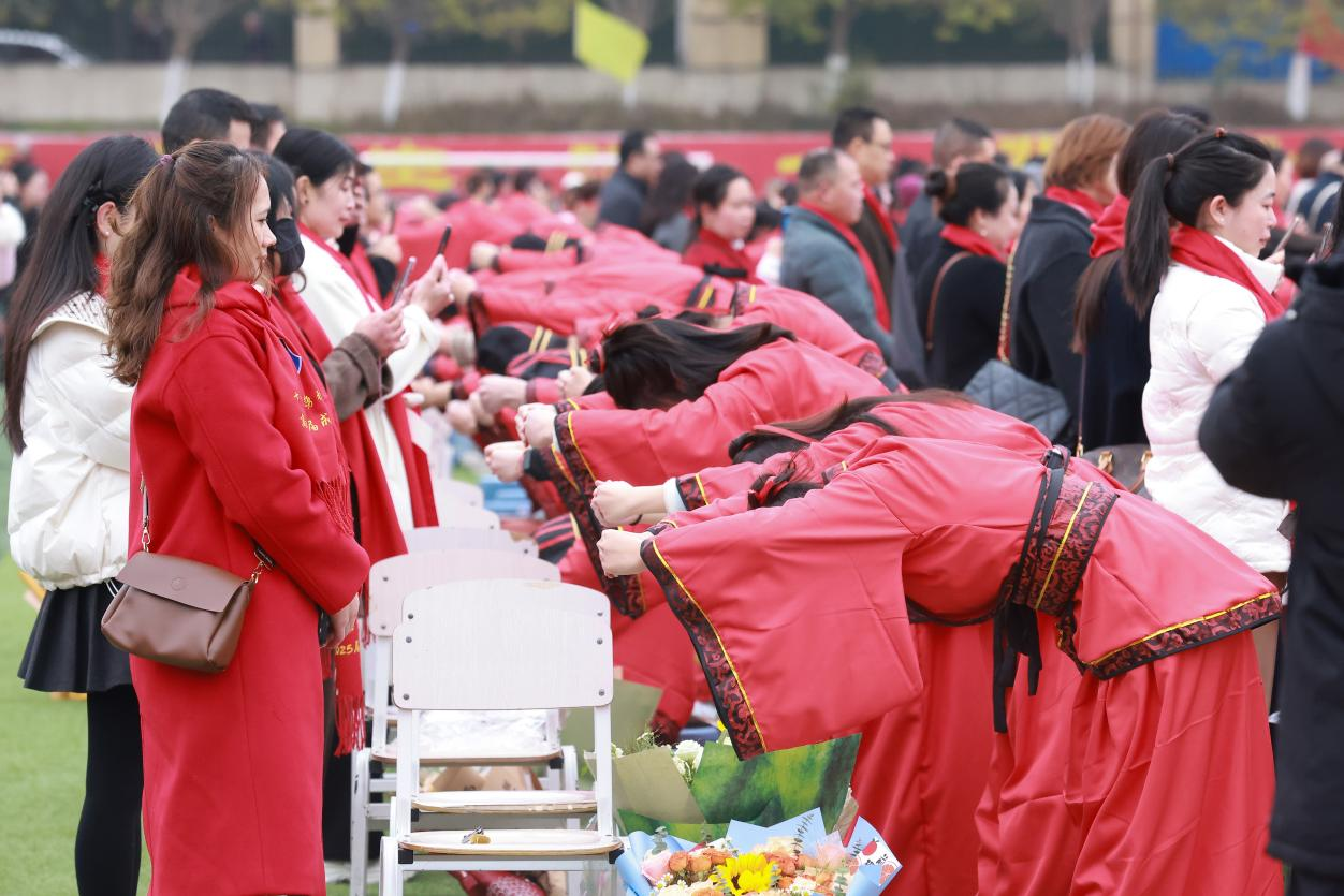 孩子们向父母和老师鞠躬拜谢