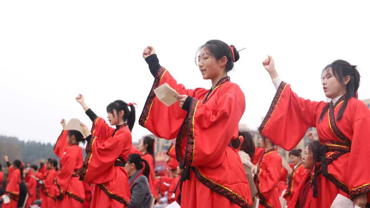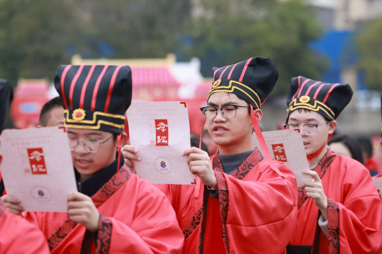 全体学子齐声诵读《孝经》