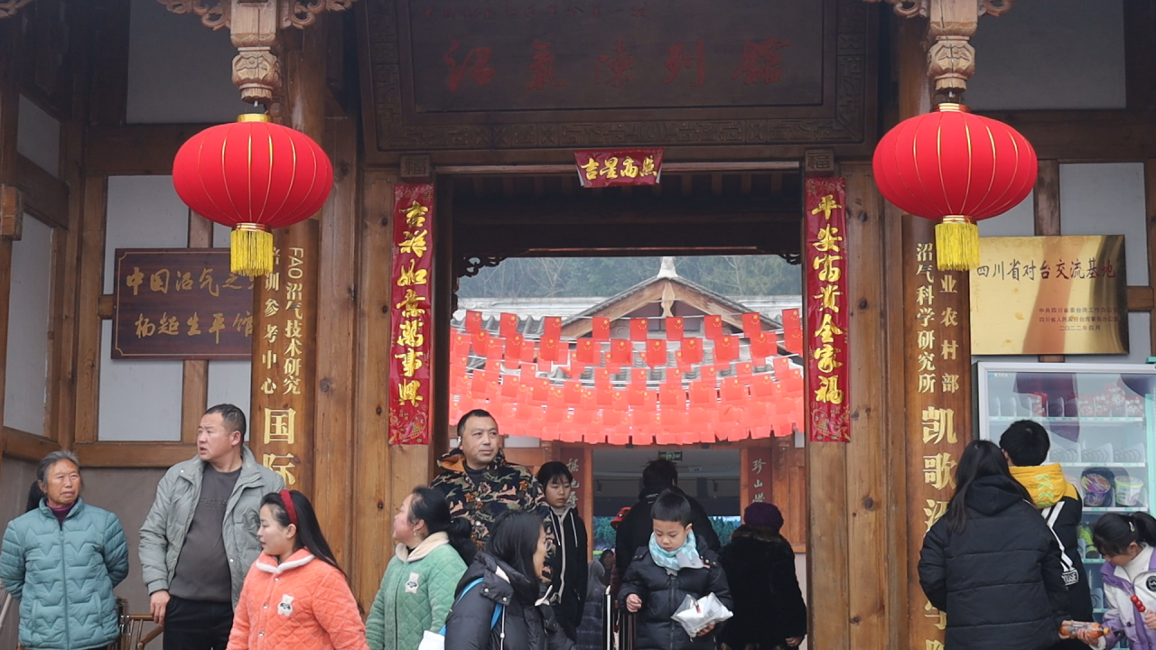 除了丰富多彩的活动之外,景区内青瓦白墙的新农村建筑与田垄池塘相映成趣,农耕博物馆内陈列的蓑衣、犁铧勾起老一辈游客的回忆,舞台旁的沼气文化陈列馆则让游客们沉浸式感受沼气文化的独特魅力。来自成都的游客张先生感慨:“这里既有原生态的田园风光,又有独特的沼气文化陈列馆,适合全家人一起游玩。”