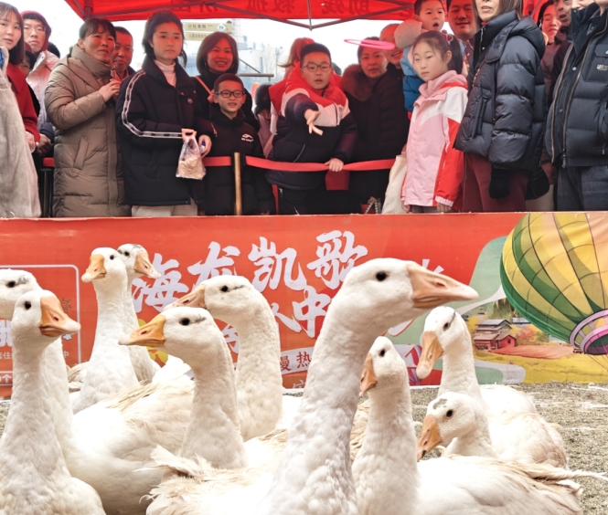 为增加游客的体验感,景区还设置了“套大鹅”“推鸡公车”“真人抓娃娃”“亲子运动会”等系列活动,不少游客全家老少齐上阵,一同体验农耕文化的风采。