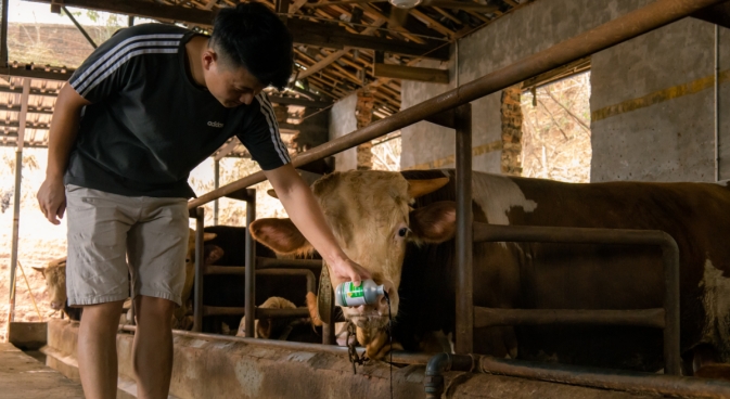 “我们是在喂食后一个小时左右,将藿香正气口服液和牛磺酸均匀地投放在牛儿的饮用水里,结合排风扇、吊扇等物理降温手段,能一定程度上缓解天气给牛儿带来的不适。”安居区绿优佳源养殖专业合作社负责人吴佳告诉记者。