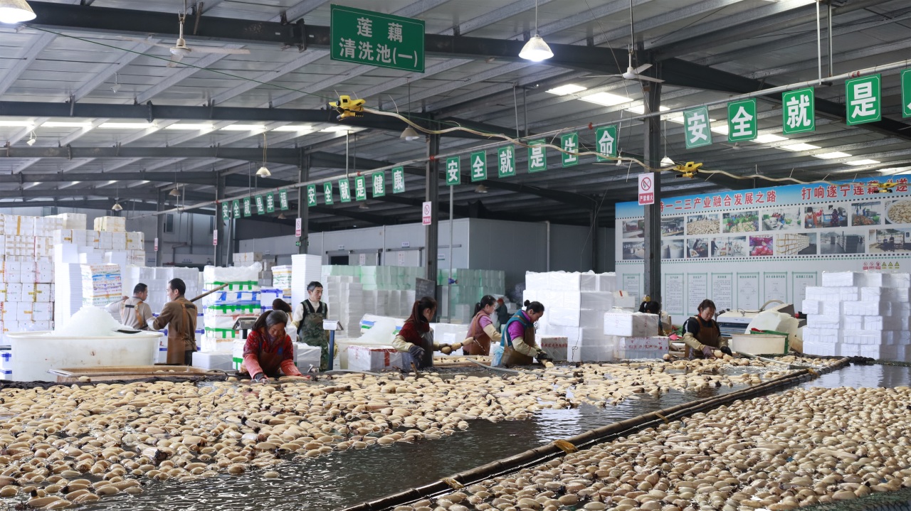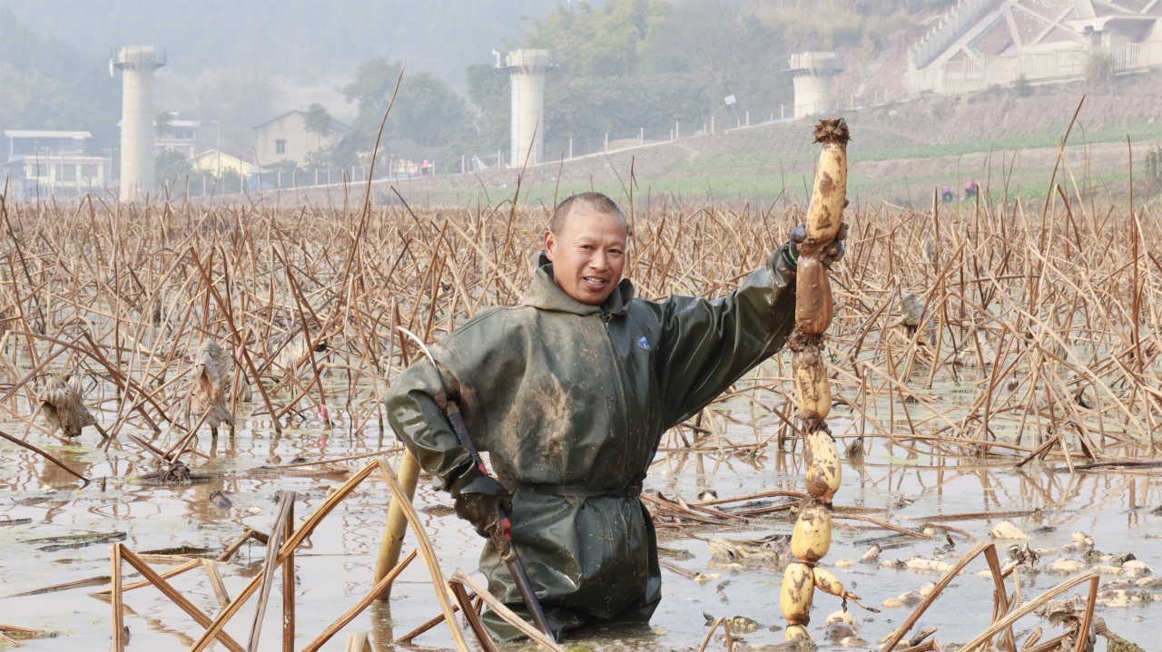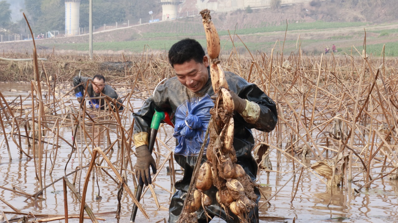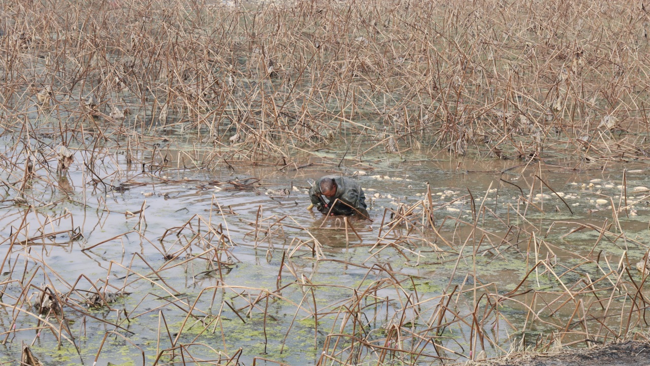 藕农们正忙碌地采挖鲜嫩、壮硕的莲藕