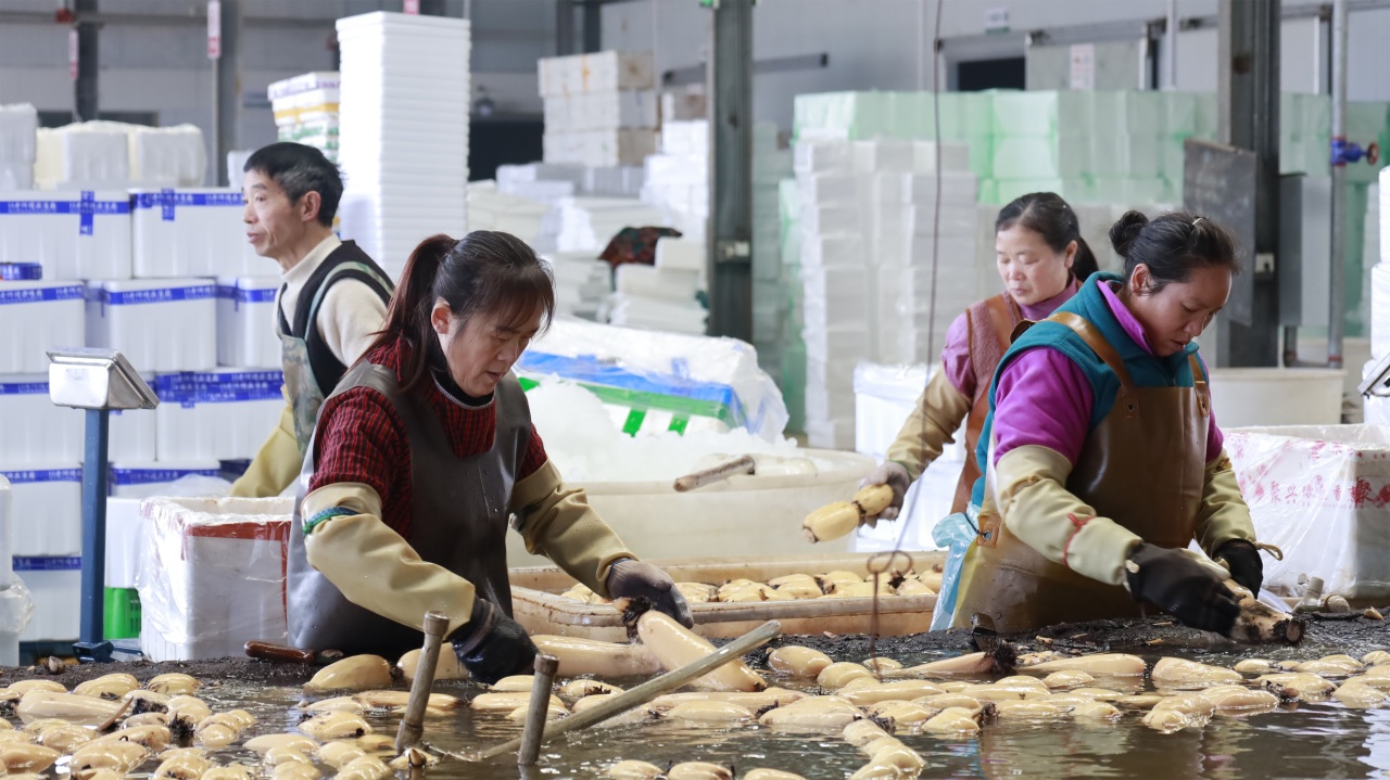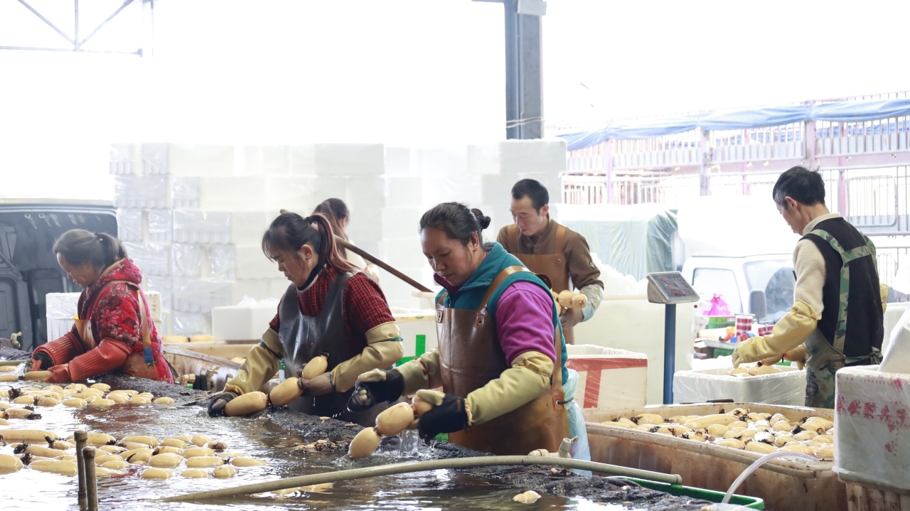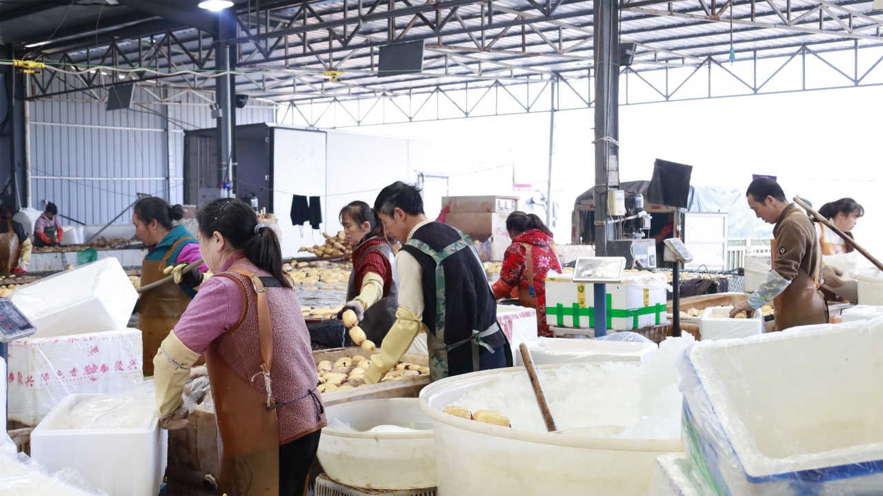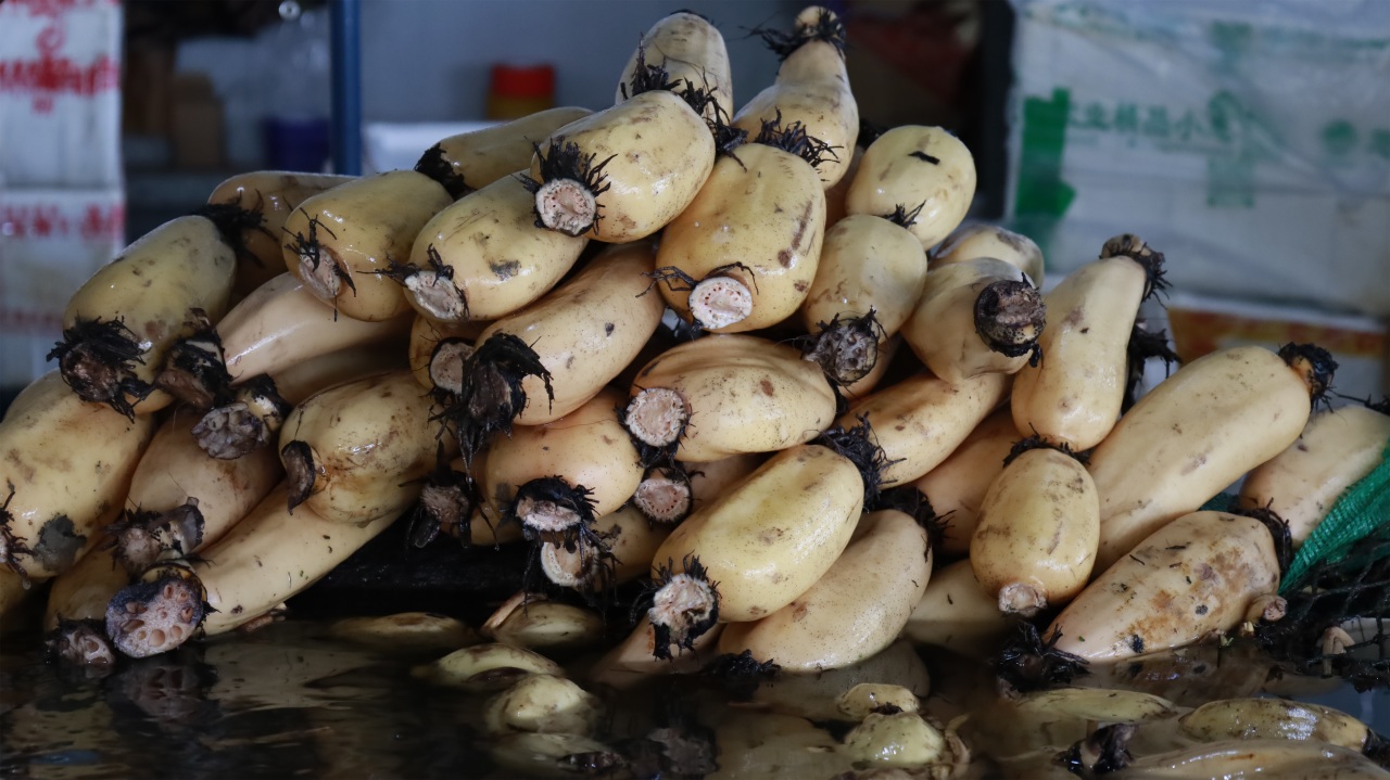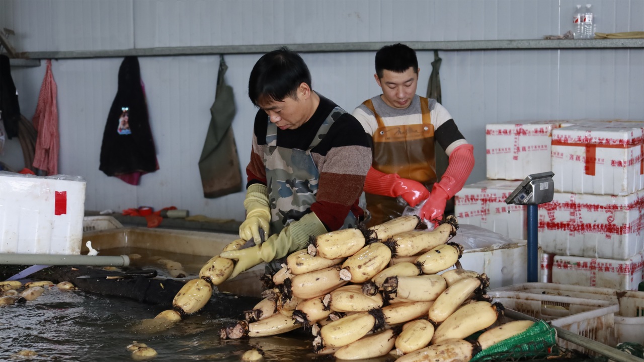 藕农们正忙碌地采挖鲜嫩、壮硕的莲藕
