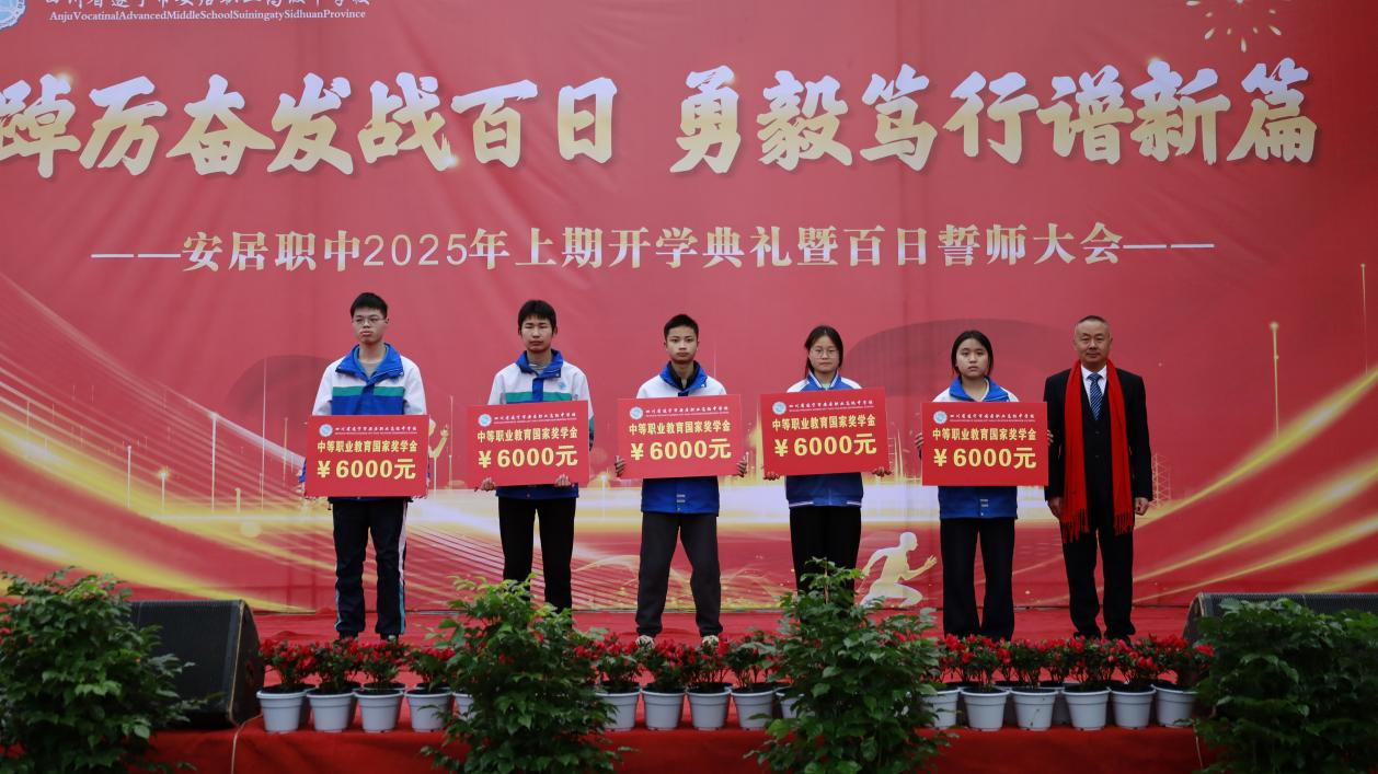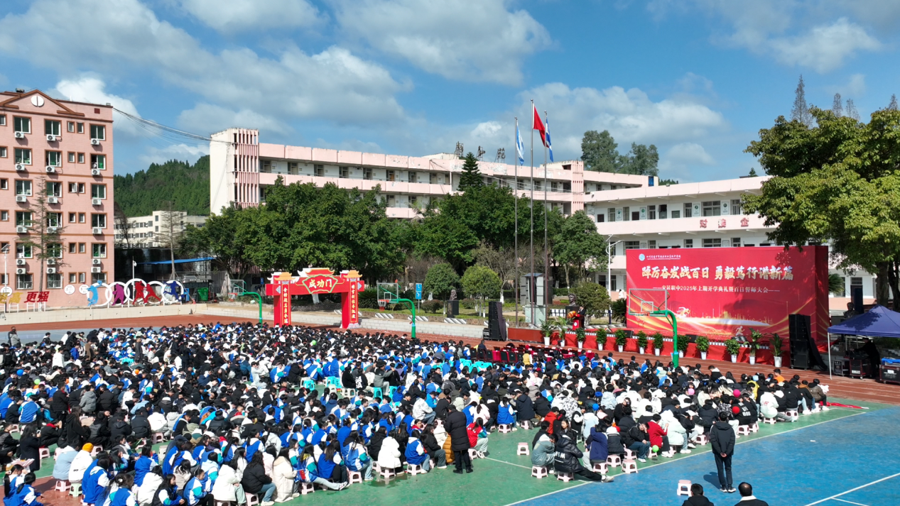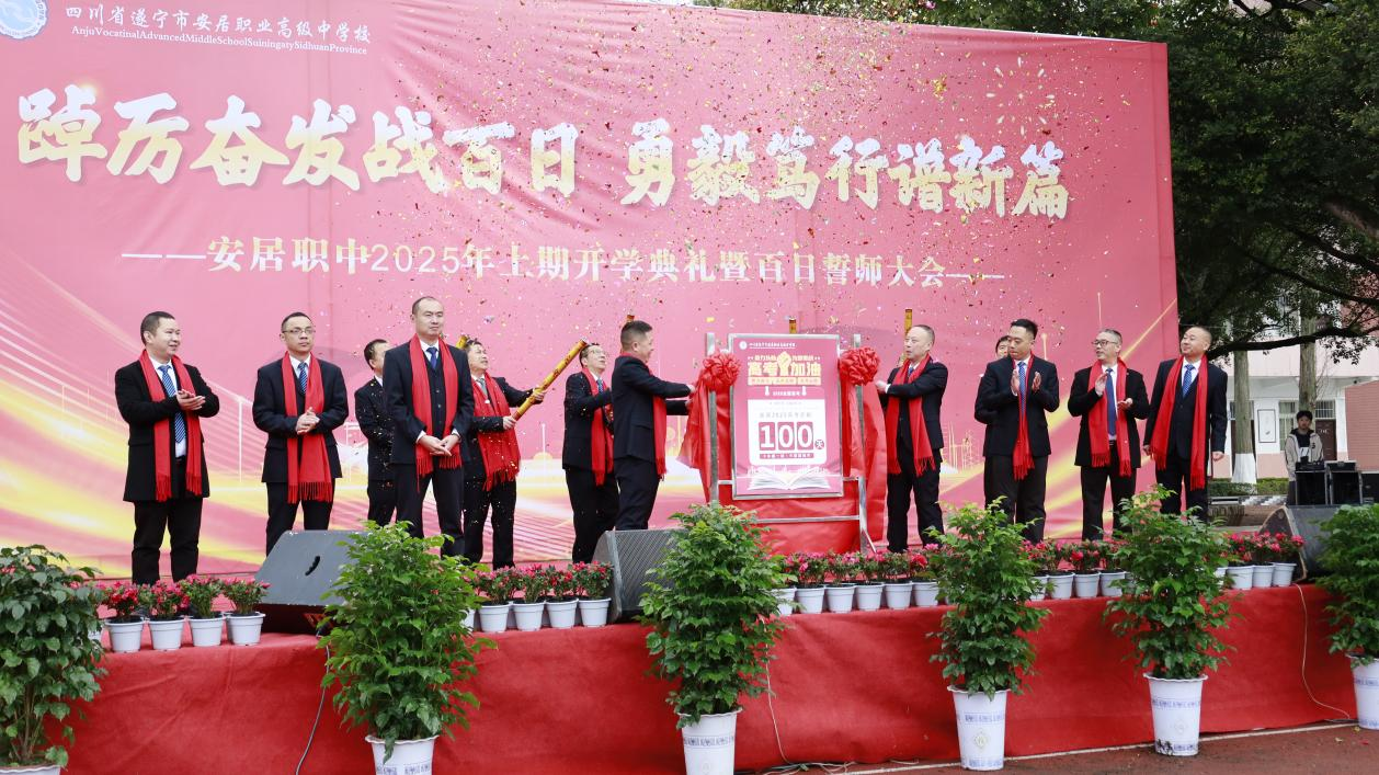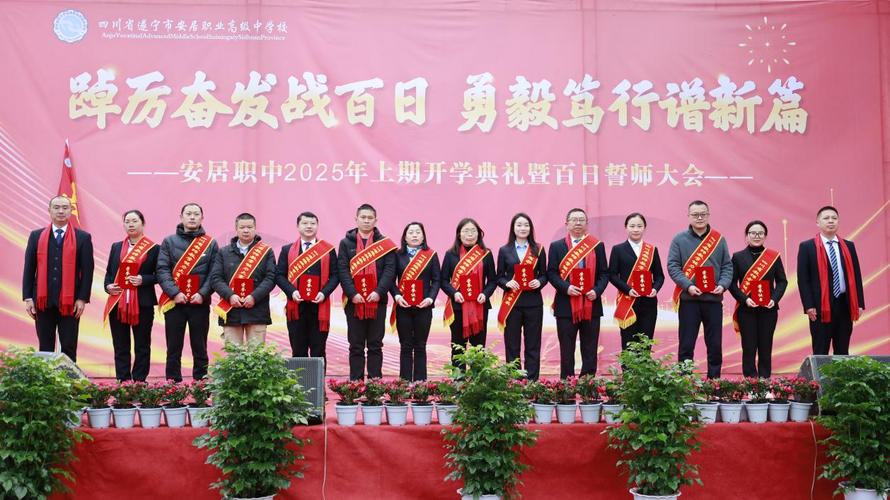 “高考加油、高考加油……”,3月3日,安居职中全体师生齐聚校园,举行了以“踔厉奋发战百日 勇毅笃行谱新篇”为主题的2025年上期开学典礼暨百日誓师大会。通过庄严的仪式、铿锵的誓言和深情的寄语,为新学期注入奋进力量,为高三学子点燃冲刺激情。