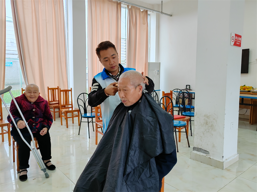 除了庆祝生日,志愿者们还为老人们表演节目、义务理发、打扫房间,并送上了慰问品,面对面交流谈心,了解他们的生活和健康状况。此外,还组织了互动游戏,让老人们在游戏中享受到了久违的童趣和欢乐。“今天很热闹,不仅给我们表演了节目,还给我们带来了慰问品,在过节这一天我特别高兴。”彭爵金老人说。