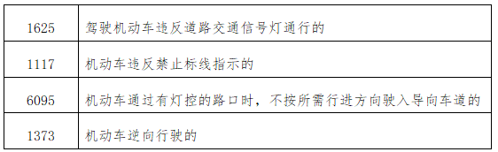 2.闯红灯抓拍设备可记录的违法行为及代码: