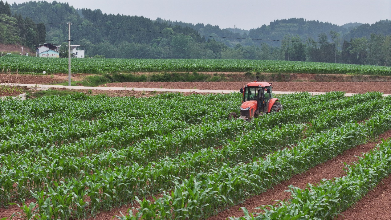 “5月是春玉米田间管理的关键时期,目前正施加水分、叶面肥和除草,几天后将控旺,预计本月下旬完成春玉米田管,让玉米长得更加健壮,提高产量。” 奉光荣种植家庭农场负责人奉光荣介绍。