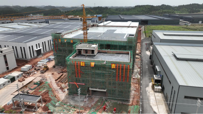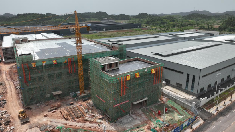 “今年以来,我们加快推进项目建设效率革命,目前整体施工进度已经达到了80%,工程进度比起预定工期提前了4个月,预计将在今年7月底完成项目建设。”遂宁华易机电科技有限公司项目施工负责人邓建告诉记者,目前项目综合楼砌体已经完成,接下来准备进行综合楼和二号车间外墙抹灰、屋面找坡,以及一号车间墙瓦施工。