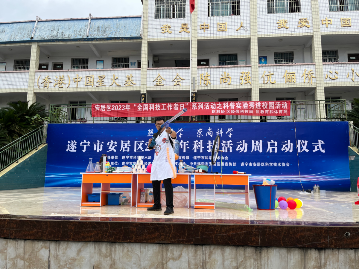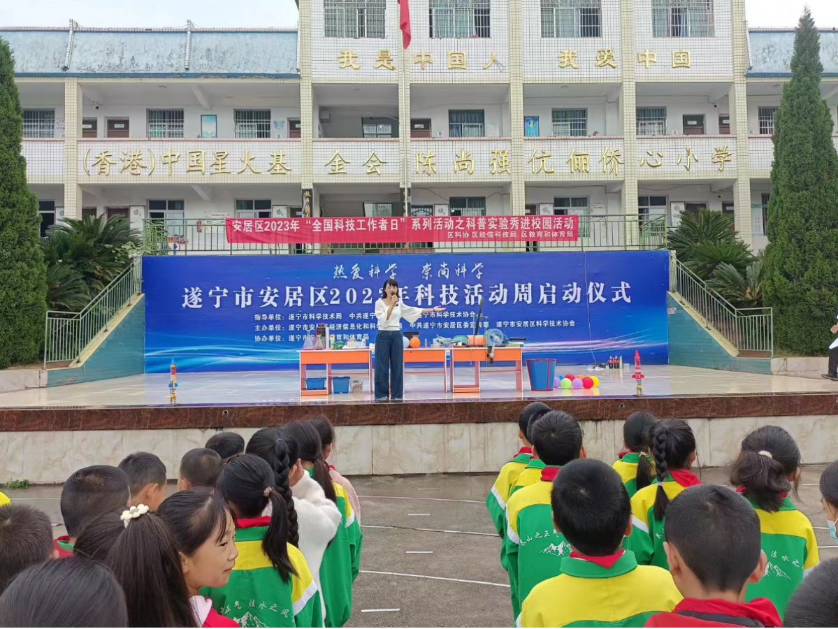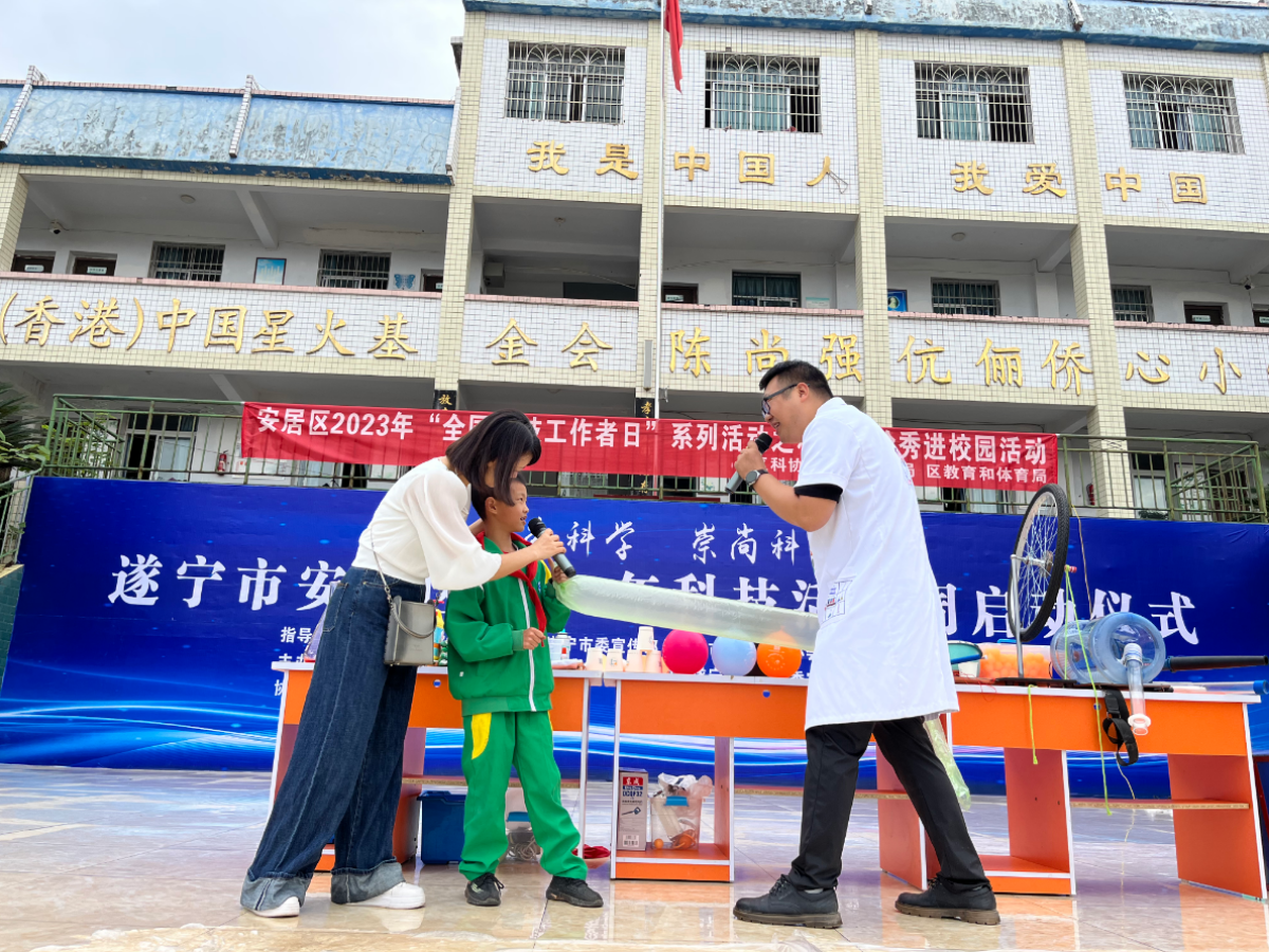 5月23日,区科协联合区经科局、区教体局组织“科普宣讲团”科普老师深入安居区横山镇中心小学开展“全国科技工作者日”系列活动之“科普实验秀进校园”。