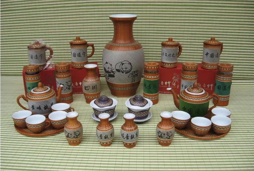 非遗工艺坊里,各类遂宁竹编、观音绣作品正在展览售卖,有竹编热水瓶、竹编茶杯、竹编水杯、竹编篮子、观音绣屏风、观音绣挂件、观音绣荷包、观音绣扇子等等,种类繁多。