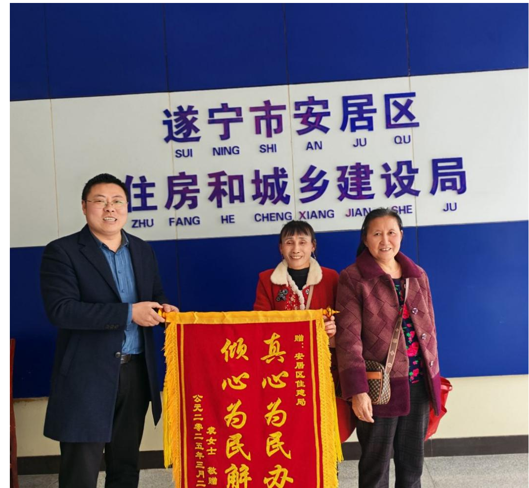 “太感谢了,真的是为我们解决了大问题。”3月21日,安居区滨江北路临街商户袁女士将一面印有“真心为民办事 倾心为民解忧”的锦旗送到了区住建局,感谢他们高效解决了困扰其商铺的“挡门路灯”问题。