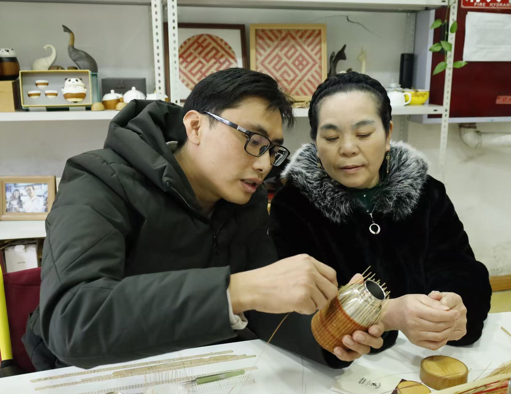 “我是第一次来学习竹编,感觉非常有意思,不论是‘挑一压一’还是‘挑二压二’,钟老师都会耐心讲解,并示范如何去正确编制。”学员小周说。在课堂上,钟老师一边教授竹编技巧,一边讲述竹编的历史故事,在学习技艺的同时也让学员们切身感受到了非遗传承的厚度。