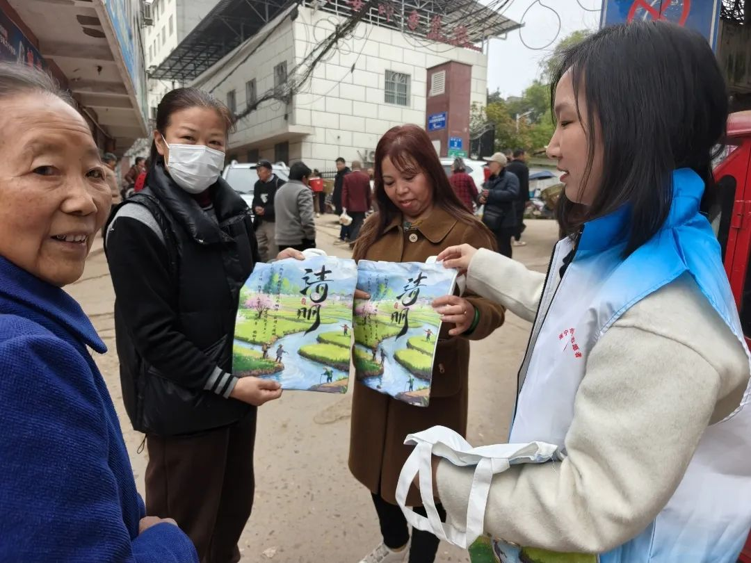 活动现场,志愿者们身披绶带,积极热情地向过往群众发放精心设计的文明祭扫文创帆布袋。这些帆布袋不仅具有实用价值,还印上了文明祭祀的宣传标语,成为流动的宣传载体。同时,志愿者们还耐心细致地为群众讲解文明祭扫知识,结合当下环保理念,倡导大家自觉抵制封建迷信行为以及焚烧纸质祭祀用品等传统陋习。