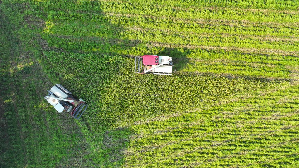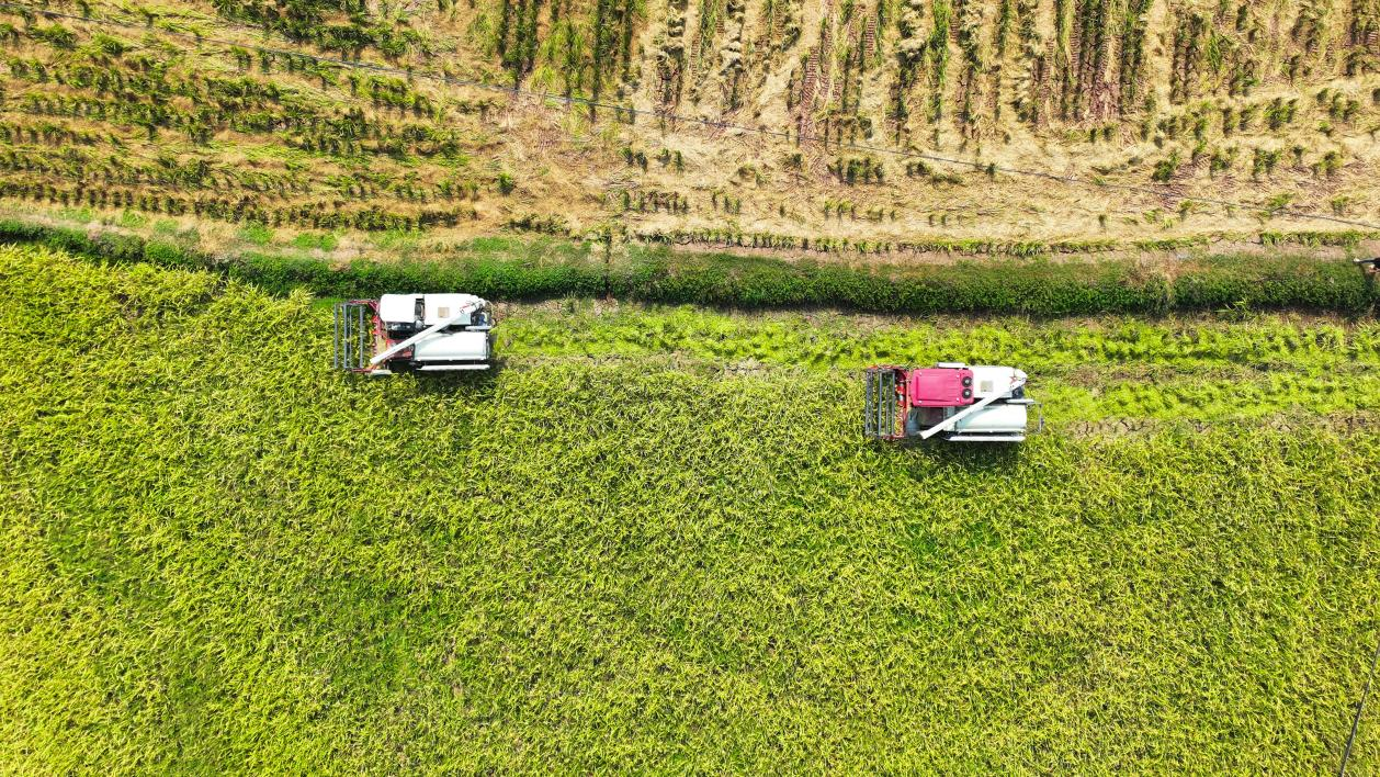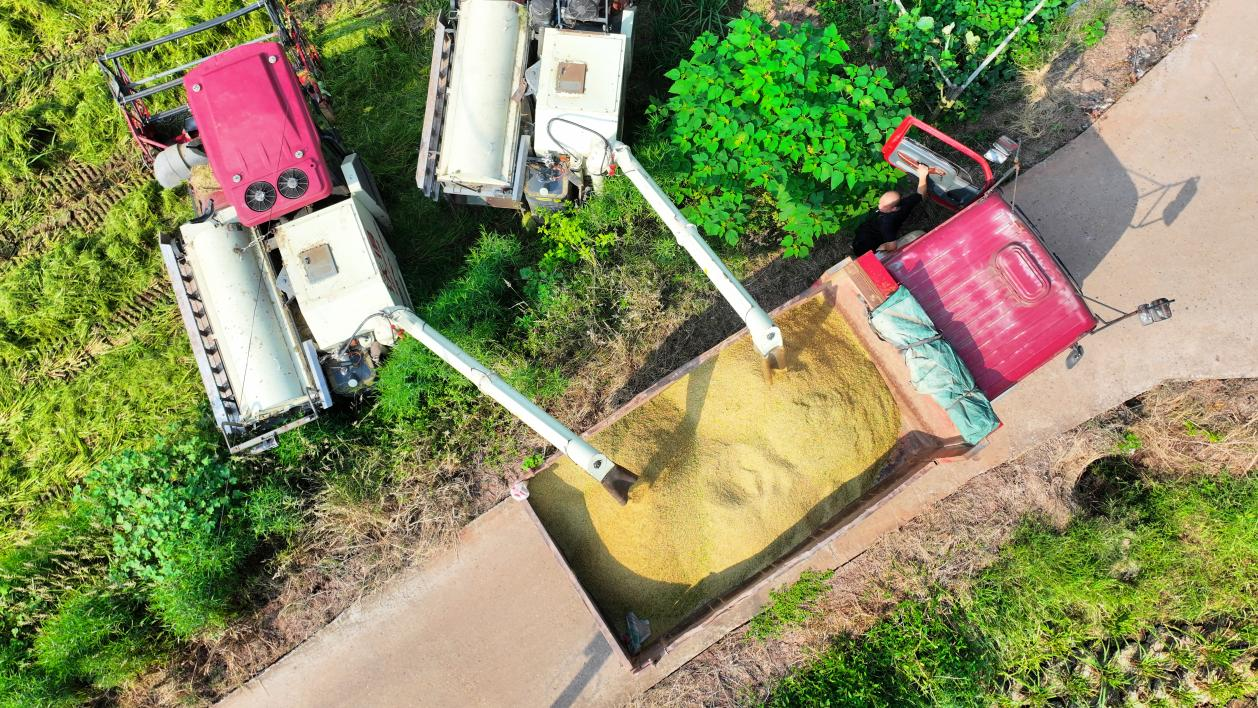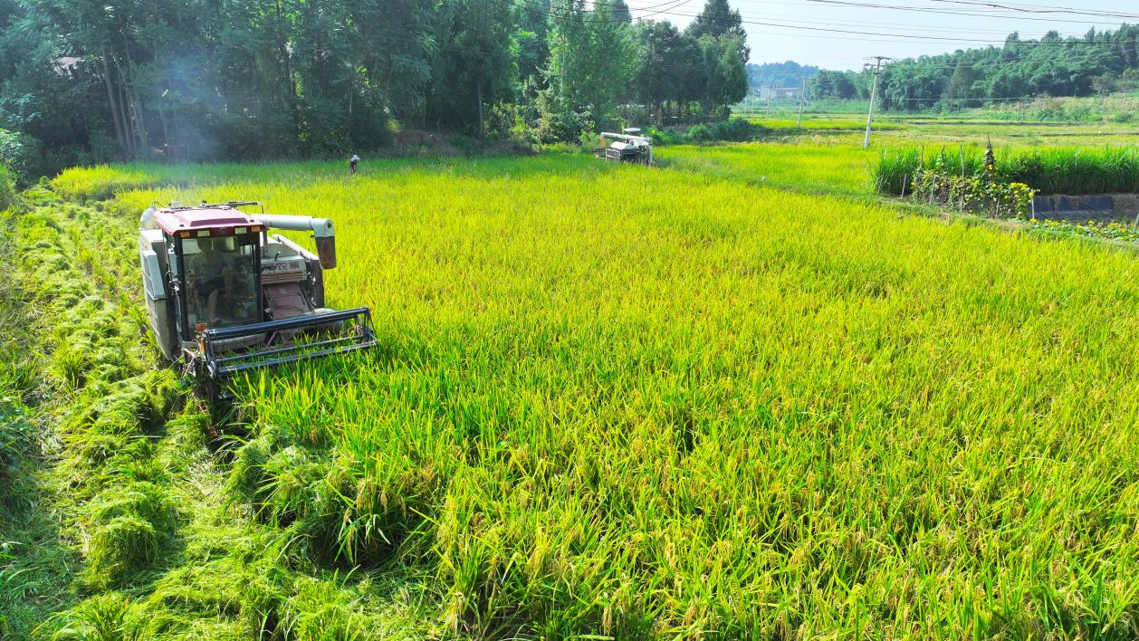 田间地头,2台收割机“吞噬”着成熟的稻穗,吐出粒粒饱满的稻谷。“今年真是个好年景!”王全脸上洋溢着笑容,“我们村种植了563亩糯稻,每亩较去年增产了300多斤,再有一两天就能收割完毕。”