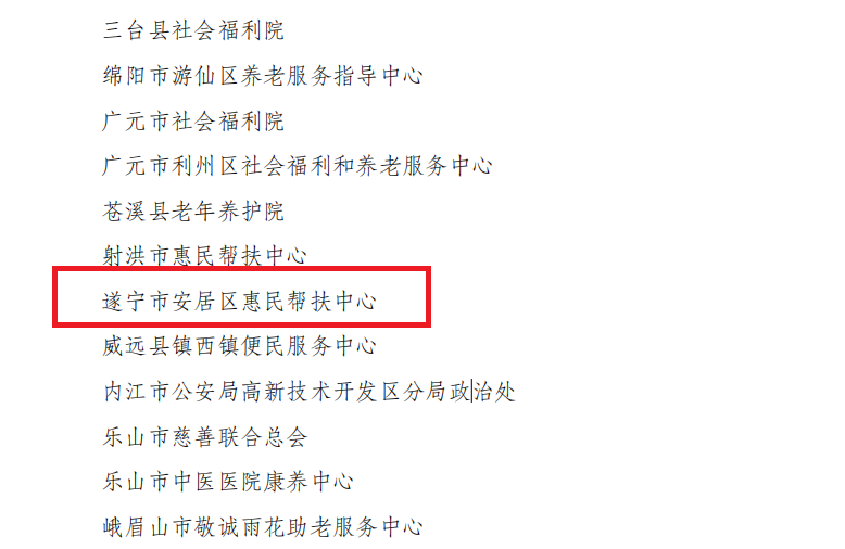全国表彰!遂宁市安居区惠民帮扶中心获全国“敬老文明号”称号