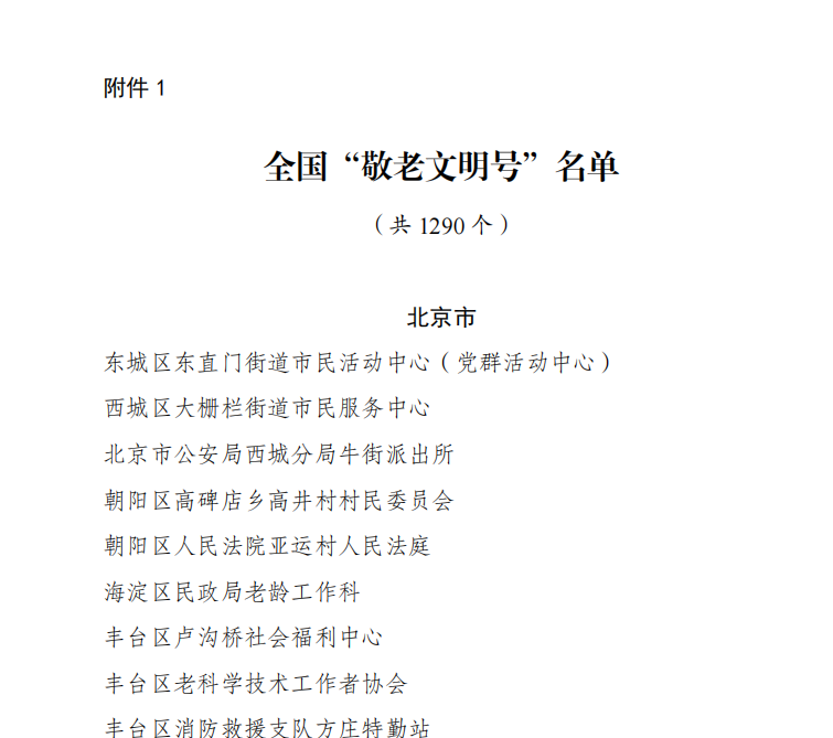 全国“敬老文明号”是由全国老龄工作委员会发起的国家级创建活动,是社会性、群众性精神文明创建的重要载体,每三年开展一次评选表彰,该活动以“关爱老人、构建和谐”为主题,创建范围涵盖各级涉老部门、为老服务组织及公共服务窗口,采用国家、省、市、县四级管理体系。