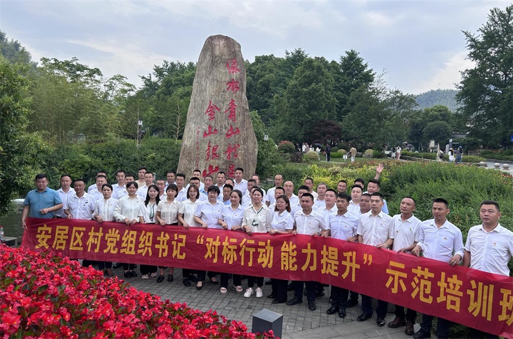 头雁振翅领飞,筑梦乡村振兴。为高质量推动“党的建设全面加强”对标跨越行动,建设一支政治忠诚、作风扎实、能力突出、群众信任的村级“头雁”队伍,近日,安居区组织50名精品村、重点村党组织书记赴浙江省开展为期一周的“对标行动 能力提升”示范培训班。通过专题学习、现场观摩、分组研讨等方式积极引导村党组织书记对标先进、拓宽思路、出位争先,在加快建设“成渝之星”安居极核和湖光山色中的安逸安居中持续发挥党建引领作用,切实提升抓党建促乡村振兴工作实效。“安居融媒”推出系列报道《借石琢玉促提升 对标跨越谱新篇》。今天推出第三期:《生态文明建设引领乡村高质量发展》。