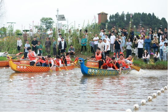 在海龙凯歌景区,一场融合了速度、力量与团队精神的龙舟赛,将安居的端午节日氛围进一步推向高潮。湖上,20支队伍、120余名选手展开激烈角逐;岸边,加油声此起彼伏,与湖上的鼓声、号子声交织成一片端午的狂欢交响。