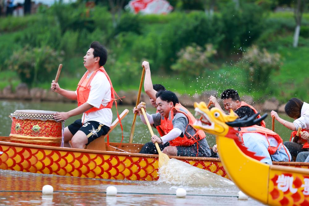 “这不仅是一场比赛,更是一次深刻的文化体验。”来自异乡的参赛选手马海约夫兴奋地表示:“以前只在电视上看过划龙舟,今天亲自上船体验,那种团队一起发力、龙舟破浪前行的感觉太棒了。”