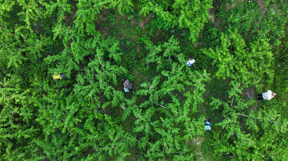 端午期间,恰逢安居鲜桃的成熟期。在安居镇红岩嘴村永正桃园,2025“乐购今夏 桃醉安居”遂宁鲜桃采摘季正火热进行中,鲜红的桃子挂满枝头,绿叶间桃香四溢,令人垂涎欲滴,吸引不少游客采摘。