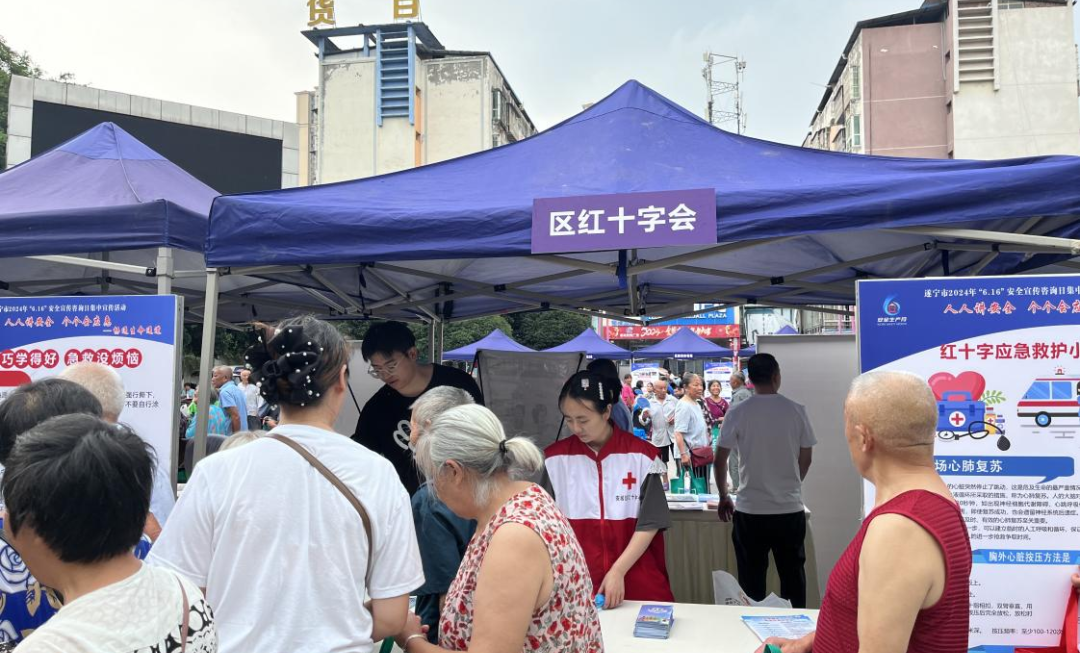 今年6月是第23个全国“安全生产月”,活动主题为“人人讲安全、个个会应急——畅通生命通道”。6月16日,遂宁市2024年“6.16”安全宣传咨询日集中宣传活动在安居区头陀寺广场举行,安居区红十字会组织会员、志愿者参加活动并进行急救技能演示、培训。