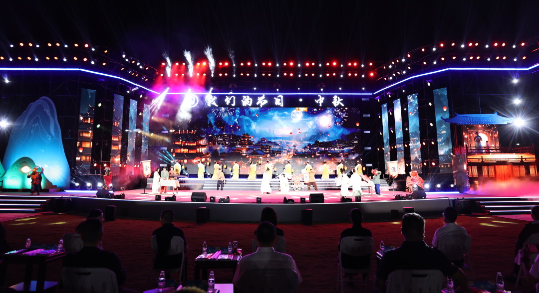 皎洁月光与璀璨灯火交相辉映,传统文化与现代艺术完美融合,现场观众共同沉浸在中秋佳节的温馨氛围中,感受着中华优秀传统文化的永恒魅力。